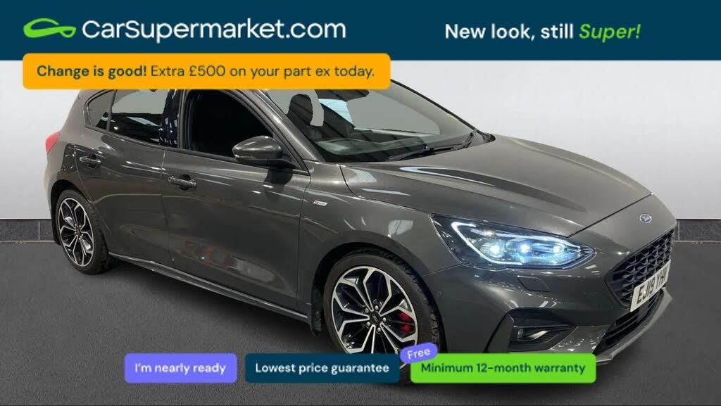 4" TFT coloured cluster screen,Bluetooth system,Digital clock,Easy fuel capless refuelling system,Eco mode,Ford pass connect,Ford SYNC 3 nav system with DAB radio, 8" colour touch screen, voice control, app link, Apple car play/Android auto and 4.2" TFT coloured cluster,PAS,Rotary gear shift dial,Trip computer,Diesel particulate filter,2 USB ports,Aux input,'Quickclear' heated windscreen/heated washer jets,Auto dimming rear view mirror,Auto headlamps (on/off),Automatic rain sensing wipers,Body colour large rear spoiler,Body colour side skirt,Body coloured bumpers,Body coloured door handles,Body coloured electrically operated and heated door mirrors with side indicators,Electrically operated front and rear windows with one touch opening and closing,Front variable intermittent wipers with electric wash,Heated rear window,LED daytime running lamp,LED front fog lamps with cornering function,Polished twin tailpipe,Power folding door mirrors with puddle lights,Rear privacy glass,ST-Line upper and lower grille with full body styling kit and wing badges,Tailgate wash/wipe,Unique door and instrument panel inserts,3 spoke flat bottomed leather steering wheel with red stitching,6 way power adjustable driver seat,60/40 split back and cushion rear seats with 2 height adjustable headrests,Alloy finish pedals,Centre console with armrest,Dark headliner,Dual zone electronic air temperature control,Front passenger seat manual height and lumbar adjust,Heated front seats,Height adjustable front headrests,Isofix child seat preparation,Paddle shift controls,Part leather upholstery with red stitching,Reach + rake adjustable steering column,Rear centre headrest,Red stitching on steering wheel,Soft console knee pads with red stitching,ABS+Electronic Brake force Distribution,Auto hold function,Driver airbag,Electronic parking brake,Electronic stability control,Front and rear seatbelt reminder,Front inertia reel height adjustable seatbelts with pre-tensioners,Front passenger airbag,Front side airbags,Hill start assist,Passenger airbag deactivate switch,Post collision braking,Pre collision assist with autonomous emergency braking and pedestrian/cyclist detection,Red brake calipers,Side curtain airbags,Three rear inertia reel lap/diagonal seatbelts,Tyre pressure monitoring system,MyKey system,Remote central locking & engine immobiliser,Thatcham category 1 alarm,Contrast stitching - Red,18" 5x2 spoke matt black machined finish alloy wheels,Mini steel spare wheel