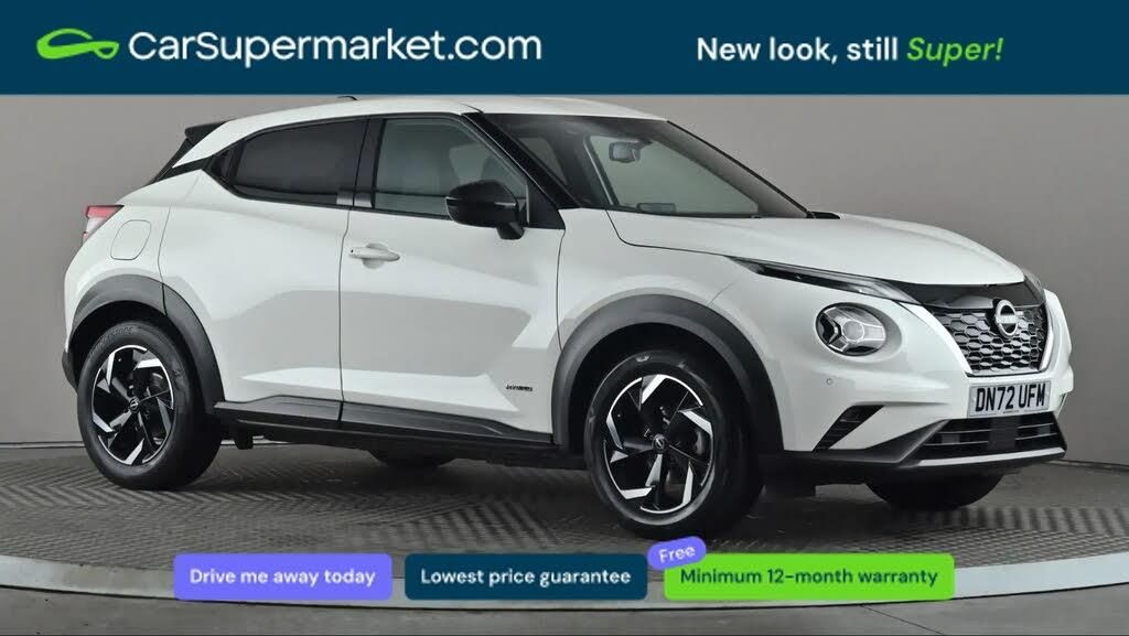 Apple CarPlay, Android Auto, Lane Departure Warning, Sat Nav, Traffic Sign Recognition, Bluetooth, Digital Radio, Privacy Glass, Automatic Climate Control;DN72UFM - Nissan Juke 1.6 Hybrid N-Connecta Auto (White) A modern hybrid SUV offering improved efficiency alongside smooth automatic performance. Combines practicality with stylish design and advanced technology. Supplied with a 159-point inspection and a minimum 12-month warranty.