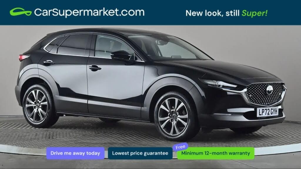 Adaptive Cruise Control, Cruise Control, Android Auto, Apple CarPlay, Blind Spot Monitoring, Parking Sensors, Bluetooth, Sat Nav, Lane Departure Warning, Rear View Camera, Traffic Sign Recognition, Privacy Glass, Heated Front Seats, Keyless Entry;Mazda CX-30 2.0 e-Skyactiv X MHEV Sport Lux Auto (Black) A refined and well-equipped crossover offering comfort and advanced safety technology. Includes adaptive cruise control, cruise control, Android Auto, Apple CarPlay, blind spot monitoring, parking sensors, Bluetooth, satellite navigation, lane departure warning, rear view camera, traffic sign recognition, privacy glass, heated front seats and keyless entry. Supplied with a 159-point inspection and a minimum 12-month warranty. Last service 22/01/2025. MOT due 30/01/2027.