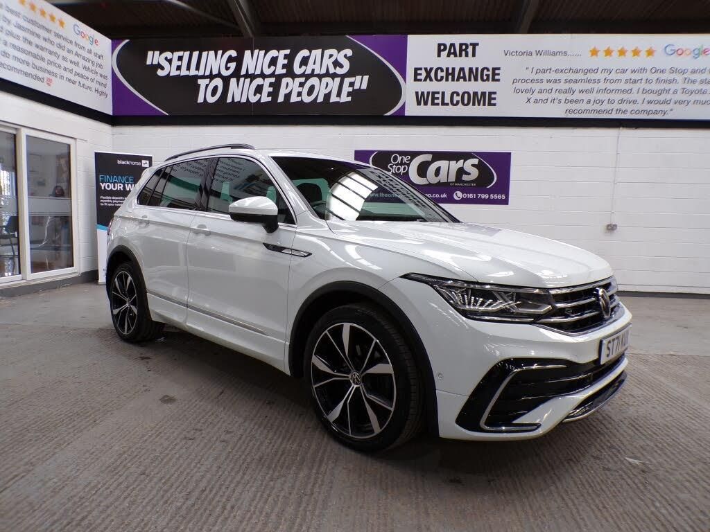 This 2021 Volkswagen Tiguan TSI R Line boasts two keys and a full service history, ensuring its excellent provenance, and will be supplied with a 12 month MOT for your peace of mind. This Euro 6 compliant model features a responsive 1.5 litre petrol engine, offering an engaging driving experience with a 0-62mph acceleration time of just 9.2 seconds. Inside, you'll find a wealth of R Line trim features, including heated leather trimmed three spoke multifunction steering wheel and gear knob, alongside a heated seats and a heated steering wheel from the Winter Pack. The App Connect system, compatible with Android Auto and Apple CarPlay, keeps you seamlessly connected, while LED Plus self levelling dipped and main beam headlights illuminate your journey. The Tiguan is designed for practicality and comfort, evident in its generous boot space, perfect for families or those with active lifestyles. The Assistance Pack Plus enhances safety and convenience, incorporating Blind Spot Assistance and front and rear parking sensors to make manoeuvring effortless. It will come with a three month Warranty which includes full roadside assist breakdown cover, provided by a trading standard approved company. For full details of this vehicle and to request a walk around video please give one of our dedicated sales team a call on 0161 799 5565 PLEASE NOTE THAT CURRENTLY NOT ALL CARS ON SITE HAVE BEEN FULLY PREPARED TO SHOWROOM STANDARD. Therefore, appointments are preferred to give us a chance to check the car over prior to your visit. This is not compulsory and should you wish to visit the site without an appointment please just bear in mind the vehicles may still require all or some of their prep work. Thank you in anticipation of your patience. ALL CARS COME WITH AT LEAST A TEN MONTH INDEPENDANT MOT WITH ALL ADVISORIES COMPLETED PRIOR TO COLLECTION. ALL CARS HAVE AN OIL AND FILTER SERVICE (IF ONE IS DUE) PRIOR TO COLLECTION ALL OUR CARS ARE HPI CLEAR PART EXCHANGE WELCOME, VERY COMPETIVE VALUES OFFERED FINANCE OPTIONS ARE AVAILABLE ,GREAT RATES OFFERED