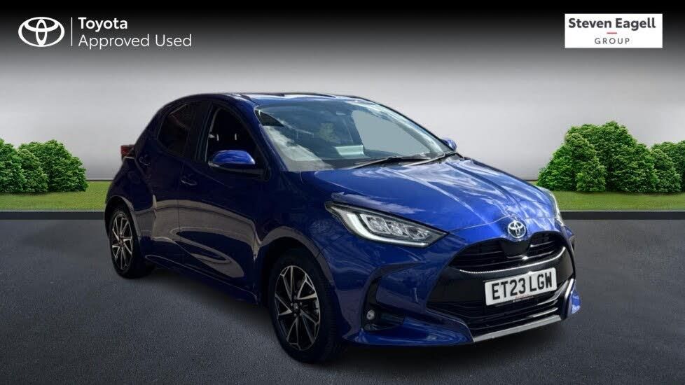 This 2023 Toyota Yaris VVT-h Design is a remarkable find, boasting exceptionally low mileage for its age, having covered just 7209 miles. As a Toyota manufacturer approved vehicle, you can be assured of its quality and care. This one owner, Euro 6 compliant Yaris is equipped with a responsive 1.5L petrol hybrid engine, offering an impressive fuel economy of 69 mpg. Notable features include striking LED front light guides and headlights, automatic headlights for convenience, and a handy reversing camera to assist with parking. Stay connected and entertained on every journey with seamless Bluetooth connectivity, alongside smartphone integration that includes Apple CarPlay and Android Auto. The low CO2 emissions further highlight this Yaris's efficiency, making it a more environmentally conscious choice compared to many other vehicles. This combination of low mileage, excellent fuel economy, and modern features makes this Toyota Yaris a truly stand out option.