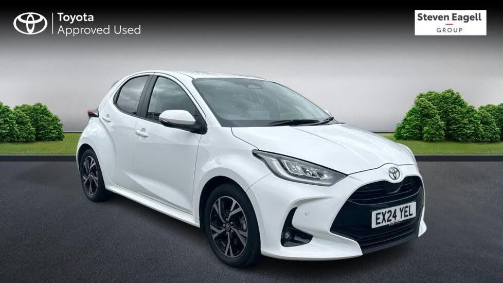 Safety Pack, Fabric - Black, 16in Alloy Wheels - Black Machined-Face - 5 Double Spoke, 3-Spoke Leather Steering Wheel, 7in Customisable Digital Combimeter, 9in Toyota Touch 3 Multimedia System, ABS - Anti Lock Braking System, Accessory Connector, Acoustic Windscreen Glass, Adaptive Cruise Control - Full Range, Adjustable Speed Limiter - ASL, Air Spats - Front and Rear, Air Ventilation System, Airbags - Curtain SRS Shield, Airbags - Driver and Passenger - Central, Airbags - Driver and Passenger - Front, Alarm and Immobiliser, Armrest - Front Central, Assist Grips - Front and Rear, Automatic Air Conditioning, Automatic Headlights, Automatic High Beam with On-Off Switch, B-Pillar with Black Out and Decal in Resin, Black Door Moulding, Black Interior Door Handles, Bluetooth Connectivity, Body Coloured Door Mirrors, Boot - Luggage Room Light, Bumper and Grille Garnish - Paint, Child Safety Door Locks, Chrome Surround on Air Conditioning Button, Coat Hooks - 2x Rear, Console Box, Cupholders, DAB Digital Radio, Daytime Running Lights - LED, Default - Wheel Caps, Digital Clock, Digital Speedometer, Digital Tachometer, Door Handles - Body Coloured, Doors - Door Pockets, Doors - Lower Back and Back Door Garnish, Driver Attention Alert, Driver and Passenger Front and Side Airbags, E-Call, Electric Power Steering - EPS, Electronic Parking Brake, Emergency Brake-Light System - EBS, Emergency Driving Stop System, Floor Mats - Rear, Floor Mats with Yaris Logo, Follow Me Home Headlights, Front Fog Lights - LED, Front Grille - Upper - Gloss Black, Front Map Lights, Front Passenger Airbag On-Off Switch, Front Power Windows with Anti-Jam Function, Front Seats - Standard Shape, Front USB Type-C Connector, Front USB-C Device Charger, Glovebox - Slow Opening with Single Compartment, Grey Roof Lining, Grille - Lower Front Grille in Black, HAC - Hill Start Assist Control, Hard Tonneau Cover, Headrests - Front and Rear, Height Adjustable Driver Seat, Hybrid Energy Display, ISOFIX Seat Fixing - Rear, Intermittent Front and Rear Wipers, LED Front Light Guide, LED Headlights, LED High Level Stop Light, LED Indicators, LED Rear Combination Lights, LED Rear Light Guide, Lane Trace Assist, Leather Gear Shift, Manual Day-Night Rear View Mirror, Manual Headlight Levelling, Manual Retractable Door Mirrors, Manually Sliding Driver and Passenger Seat, Occupant Detection - Passenger and Rear Seat Sensor, Over-the-Air Updates, Overhead Console, Pollen Filter, Power Adjustable and Heated Door Mirrors, Power Remote Door Locking - Double Locking - Deadlock, Pre-Collision Warning System with Pedestrian and Cyclist Detection, Pre-Wiring for Towing Hook, Rear Power Windows with Anti-Jam Protection, Rear Privacy Glass, Rear Spoiler - Night Sky Black, Rear Storage Box, Rear Window Defogger with Timer, Rear-view Camera Display in Display Audio Screen with Static Guide Lines, Remote Door Locking, RepaIr Kit Box - Luggage Tray, Reversing Camera, Road Sign Assist, Seat Belt Reminder - Front and Rear, Shark Fin Antenna, Side Air Vents - Gloss Black with Painted Insert, Smartphone Integration including Apple Car Play and Android Auto, Smartphone Remote Door Lock, Speakers x4, Split Folding Rear Seats - 60-40, Steering Wheel Switches, Sunvisor - Driver and Passenger with Vanity Mirror, Tilt and Telescopic Steering Wheel Adjustment, Tyre Pressure Warning System, Tyre Repair Kit, VSC - Vehicle Stability Control, Voice Recognition, Wheels - Spare Wheel Cover