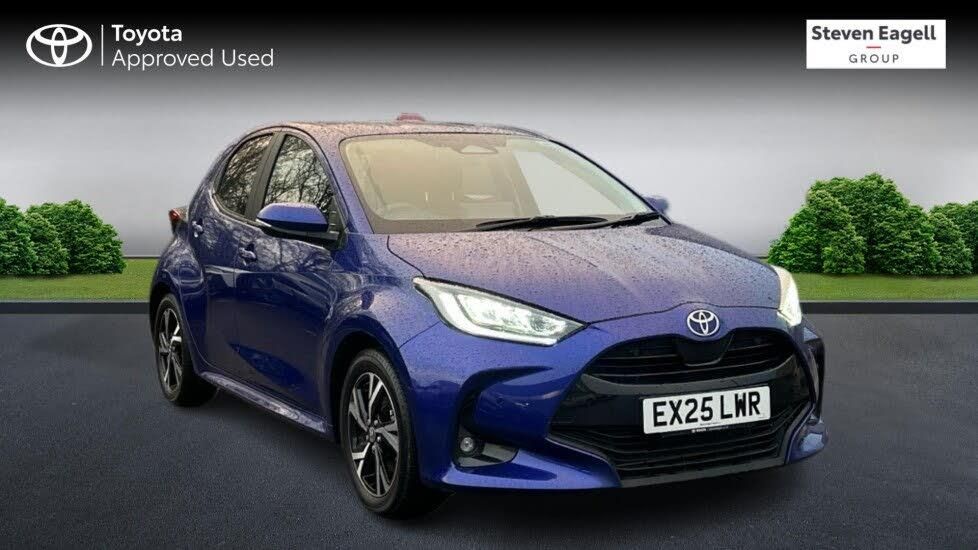 This 2025 Toyota Yaris VVT-h Design is a Toyota manufacturer approved vehicle with a full service history and only one owner from new, offering excellent peace of mind. It features a responsive 1.5L Petrol Hybrid engine, meeting Euro 6 emission standards and boasting low CO2 emissions. The MOT is valid until April 2028, further underscoring its readiness for the road. This Design trim Yaris comes equipped with a comprehensive Safety Pack, including Blind Spot Assistance and front and rear parking sensors, alongside automatic headlights for enhanced visibility. Enjoy seamless connectivity with Bluetooth and smartphone integration, supporting both Apple CarPlay and Android Auto. The adaptive cruise control ensures a relaxed driving experience, making this Yaris a smart and well equipped choice.