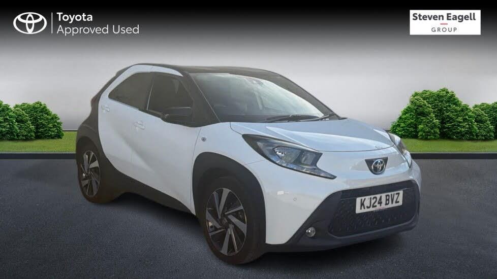 This 2024 Toyota Aygo X VVT-i Edge is a truly special find, boasting a full dealership service history and having had only one owner from new, all backed by Toyota manufacturer approval. This stylish Edge trim model features a responsive 1.0L petrol engine, meeting Euro 6 emissions standards. Inside, you'll appreciate the convenience of the Parking Pack with front and rear sensors, automatic headlights, and intelligent adaptive cruise control managed via the steering wheel. Stay connected effortlessly with smartphone integration for both Apple CarPlay and Android Auto, all part of the comprehensive Toyota Safety Sense suite. The Aygo X VVT-i Edge stands out with its impressive fuel economy, achieving a remarkable 57 miles per gallon, which indicates it is more economical than many similar vehicles. Furthermore, its low insurance group and low CO2 emissions highlight its cost effectiveness and environmental consideration, making it a sensible choice for many drivers.
