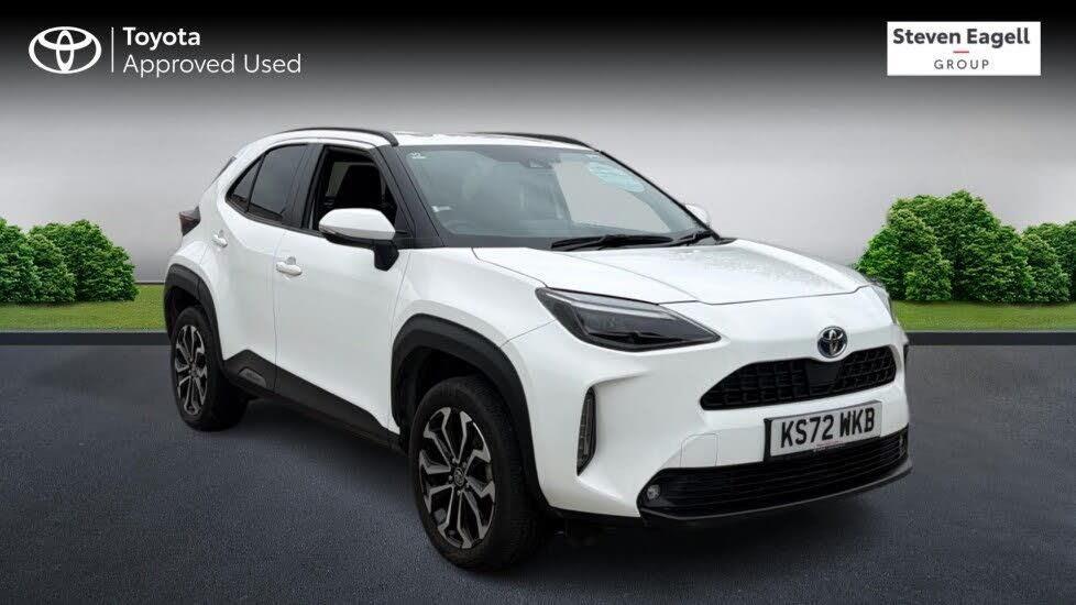 This 2023 Toyota Yaris Cross VVT-h Design is a Toyota manufacturer approved vehicle with a full dealership service history and remarkably low mileage for its age, having covered just 21,400 miles. This stylish compact SUV features a responsive 1.5L Petrol Hybrid engine, meeting Euro 6 emission standards. Its Design trim level comes equipped with practical and modern notable features, including LED projector headlights that automatically switch on, smart entry with push button start for effortless access, and an 8in Toyota Touch 2 multimedia system offering seamless smartphone integration with Apple CarPlay and Android Auto. You'll also benefit from convenient Bluetooth connectivity for hands free calls and music streaming. The Yaris Cross VVT-h Design offers excellent running costs, highlighted by an impressive fuel economy of 63 mpg, making it an economical choice for your daily journeys. Its low CO2 emissions and placement in a low insurance group further indicate that this vehicle is designed to be more affordable to own and run compared to many other vehicles in its class. This combination of efficiency, advanced technology, and Toyota's renowned reliability makes this Yaris Cross a compelling option.