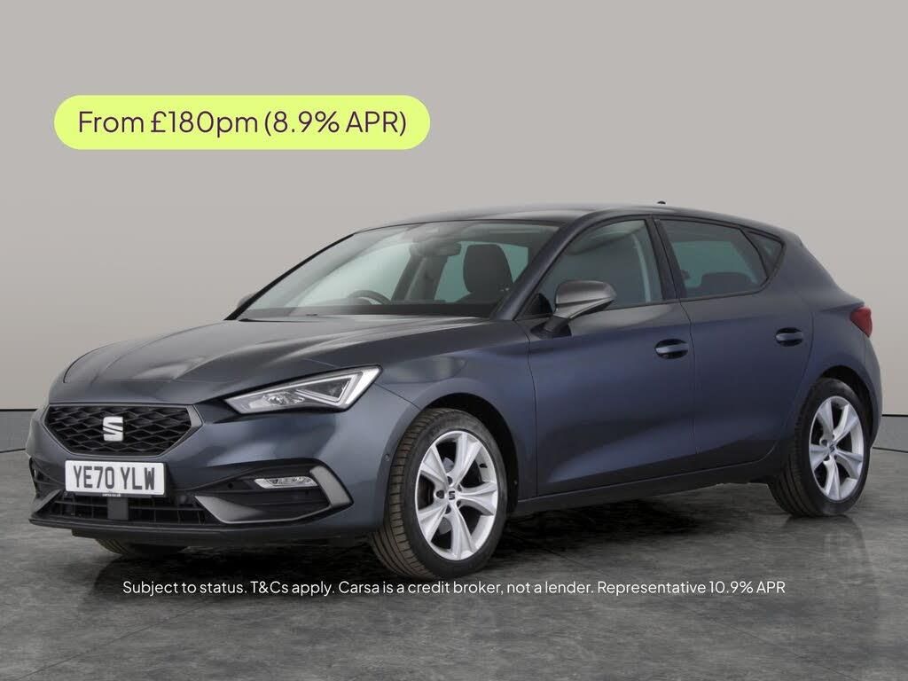 Discover the dynamic Seat Leon FR in stylish grey. Enjoy seamless connectivity with Apple CarPlay and integrated sat nav to guide every journey. Parking is a breeze with park assist, front and rear sensors, and bright LED headlights for enhanced visibility. Experience comfort with climate control, air conditioning, and the convenience of keyless start. Cruise control makes longer drives effortless. This sporty hatchback perfectly blends smart technology and striking looks. 2 services recorded, last serviced on 27/03/2026 at 32,157 miles. MOT to 25/11/2026. Visit our website for service history, online valuation, full vehicle specification plus multiple images. This vehicle is VAT qualifying. Any feature/option specified here is from 3rd party data. We cannot guarantee the accuracy of any specification supplied by a 3rd party. We recommend that you physically check the specification of the vehicle on site prior to purchase. This information does not form part of the buying contract. Terms & Conditions apply. We have over 2,000 cars available from our 10 national branches, check our website to see all our stock. Our Trustpilot rating is 4.4/5 with over 9,000 reviews.