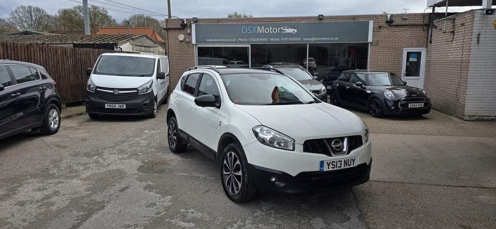 2013 Nissan Qashqai 1.6 dCi 360 130 Start/Stop (Diesel Manual), - ONLY 3995 -, white colour, 18 alloy wheels-refurbished gloss black colour, rear roof spoiler, chrome glass surround, matt silver roof rails, privacy glass, electronically adjusted folding mirrors, SAT Nav, rear view camera with intelligent around view monitor, front and rear parking sensors, front and rear electric windows, dual zone climate control, cruise control and speed limiter, bluetooth hands free system, DAB radio and CD player, start/stop push button, steering wheel mounted audio controls, TPMS - tyre pressure monitoring system, puncture repair kit, AUX, 5 seater, 6 speed manual, half leather interior, leather steering wheel with multifunctions, isofix, remote control locking, 1598 cc, 130 bhp, V5, 2 keys, full service history-11 stamps maind dealer, one owner, 84,000 miles, insurance group 22E, will come with a new MOT, drives great, very clean well looked after vehicle, 35 annual tax. @ FINANCE AVAILABLE @ INDOOR VIEWING AVAILABLE @ WARRANTY. For more information please do not hesitate to contact me on 07471656020 or 01522698880