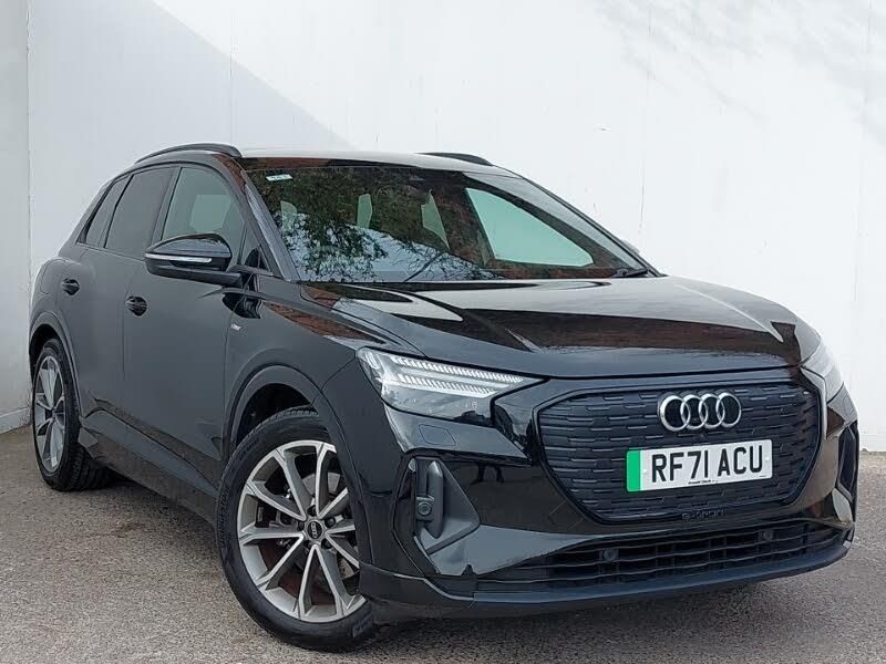 Adaptive cruise control, LED daytime running lights, LED Headlights, Rear parking sensor, Swerve assist and turn assist, Progressive steering, Power operated tailgate, MMI Navigation Plus with high resolution 10.1 inch touchscreen colour display, Lane departure warning system, Camera based traffic sign recognition, Audi Smartphone Interface with wireless functionality, Bluetooth interface, Audi drive select, Audi connect safety and service (e-call), Mode 3 AC charging cable 22 kW, Industry plug CEE 32 A/230 V/6 h/long + straight, Household plug type G (GB), AC and DC charging access point positioned on the rear right, Compact e-tron charging system, 7.2 kw On board Charger, 100kW DC charging capability, DAB Digital radio, Single frame grille with a structured, closed surface within an octagonal shape, Side and rear window privacy glass, Projection light in the exterior mirrors, e-tron logo projected from the underside of the exterior mirror onto the ground, Matrix LED headlights, digital light signatures, dynamic light sequencing and indicators + LED rear lights and illuminated light strip, Headlight washers, LED daytime running lights, Frameless auto dimming interior rear view mirror, Driver's door mirror memory, Electrically adjustable/heated/folding/auto dimming door mirrors with integrated LED indications + kerb view function for passenger side, Contrast bumpers in Manhattan grey, Black roof rails, Acoustic glass windscreen, Stainless steel pedals, Heated front seats, Front/rear floor mats, Front door sill trims with aluminium inlay, illuminated with S logo, Front and rear head restraints, Flat bottom twin spoke leather multifunction sport steering wheel with shift paddles for recuperation, Electrically adjustable front seats - driver seat with memory, Comfort front centre armrest, Door armrests in leatherette, Black cloth headlining, Auxiliary air conditioning, Accent surfaces in gloss black - centre console control panel, switch panel and trim on front doors in gloss black, 40:20:40 split folding rear seat and rear centre armrest with two cupholders, 4 way electric lumbar support for driver and front passenger, 3 zone automatic air conditioning, Non smoking pack - Q4 E-tron, Comfort and sound pack - Q4 E-tron, Ambient lighting plus pack - Q4 E-tron, Black styling pack - Q4 E-tron, Tool kit, Tyre repair kit