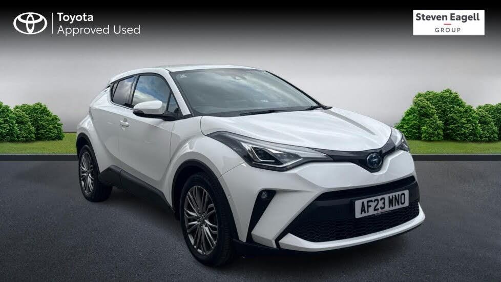 This 2023 Toyota C-HR VVT-h Excel is a truly exceptional find, boasting a single owner and an incredibly low mileage of just 9250 miles. As a Toyota manufacturer approved vehicle, you can be assured of its quality and reliability. This Euro 6 compliant model features a 1.8L Petrol Hybrid engine and comes with a full service history, ensuring it has been meticulously maintained. For your peace of mind, a 12 month MOT will be provided on purchase. Experience a refined drive with the Excel trim, which includes impressive features such as Adaptive LED Headlights for optimal visibility, and Smart Entry with Push-Button Start for effortless access. Inside, the 8in HD Toyota Smart Connect Multimedia System with Wireless Phone Charging keeps you connected and entertained, while Dual-Zone Automatic Air Conditioning ensures comfort for all occupants. The included Parking Pack with front and rear sensors makes manoeuvring simple. This C-HR stands out with its remarkable fuel economy of 57 mpg, low CO2 emissions, and a low insurance group, all of which indicate it is a more economical and cost effective choice compared to similar vehicles.