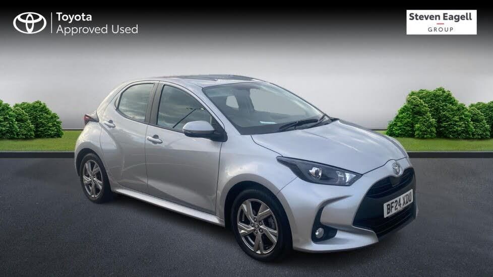 This 2024 Toyota Yaris VVT-h Icon is a superb example, having been owned by just one careful keeper from new. This stylish hatchback boasts a 1.5L petrol hybrid engine, meeting Euro 6 emission standards. It comes equipped with a suite of modern conveniences, including smartphone integration with Apple CarPlay and Android Auto, a reversing camera for easier parking, and Bluetooth connectivity. For enhanced driving comfort and safety, it features Toyota Safety Sense 2, which includes adaptive cruise control, allowing you to maintain a set distance from the vehicle ahead. The Yaris VVT-h Icon stands out with its impressive fuel economy, achieving a remarkable 69 miles per gallon, which indicates it is more economical than many other vehicles in its class. Furthermore, its low CO2 emissions and low insurance group highlight its cost effectiveness for everyday driving. These factors combined make this Yaris a sensible and appealing choice for any driver.