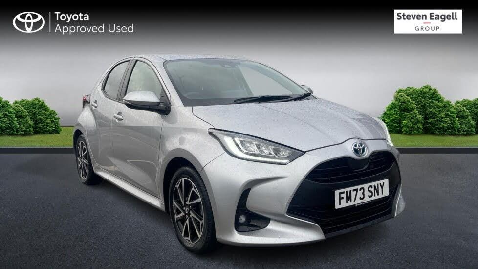 This 2023 Toyota Yaris VVT-h Design is a superb example, having had only one owner since new. This stylish hatchback boasts a 1.5L petrol hybrid engine, offering an impressive fuel economy of 69 mpg and low CO2 emissions, making it an economical choice. The Design trim level comes equipped with a suite of advanced features, including the comprehensive Toyota Safety Sense 2 package, which incorporates adaptive cruise control for relaxed journeys. You'll also find convenient Bluetooth connectivity for seamless phone integration and LED front light guides, alongside automatic headlights for enhanced visibility and ease of use. The Yaris VVT-h Design stands out with its exceptional fuel efficiency, achieving a remarkable 69 mpg, which is significantly better than many comparable vehicles. Its Euro 6 emission class rating further underlines its environmental credentials. The inclusion of adaptive cruise control within the Toyota Safety Sense 2 system provides a more sophisticated driving experience, adapting your speed to the traffic ahead. Combined with its single owner provenance and modern features, this Toyota Yaris represents a smart and well maintained option for any driver.