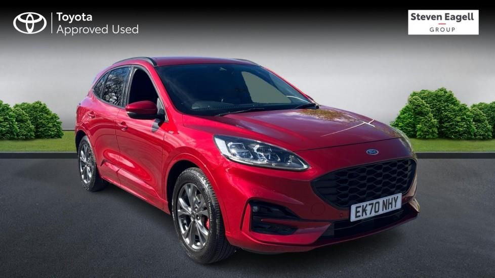 10-Way Power Adjustable Drivers Seat, 12V Power Point in Floor Console, 12v Power Point in Cargo Area, 12v Socket - Voltage Regulator, 18in Alloy Wheels - 10 Spoke - Rock Metallic, 2nd Row Sliding Seats with 60-40 Split, 8-Way Manual Passenger Seat including Lumbar Support and Height Adjust, Airbag - Driver and Front Passenger Side, Airbag - Front Passenger Deactivation Switch, Airbags - Driver and Front Passenger, Airbags - Front and Rear Side Curtain, Alloy Pedals, Aluminium - Finish Front Scuff Plates with ST-Line Script, Ambient Lighting, Auto Dimming Rear View Mirror, Auto Wipers, Automatic Door Relocking, Automatic Headlights with Auto High-Low Beam, B and O Premium Audio System with Large Instrument Cluster, Black Roof Rails, Centre Console with Electronic Parking Brake, Cruise Control with Adjustable Speed Limiter, Dark Headliner and Pillars, Driver and Passengers Sun Visor with Illumination, Dual Exhaust Tailpipes with Unique Brushed Stainless Steel Finish, Dual Zone Electronic Automatic Temperature Control - DEATC, EPAS - Electric Power Assisted Steering, ESC - Electronic Stability Programme and ABS - Anti Lock Braking System, Engine Immobiliser - SecuriLock, Exterior Door Handles - Body Coloured, Flat Bottom Steering Wheel in Sensico with Red Stitching, Floor Mats - Front and Rear - ST-Line, Ford Easy Fuel System, Ford Key Free System with Ford Power Start Button - Keyless Start, FordPass Connect, Front LED Fog Lights with Cornering Function, Front Seats - 2-Way Manual Height Adjust Passive Head Restraints, Front Seats - Drivers and Passengers Seatback Map Pockets, Front Windows - Laminated Glass, Front and Rear Bumper - Sporty Body Colour with Rear Ebony High-Gloss Insert, Front and Rear Parking Sensors, Full Digital 12.3in Instrument Cluster, Full LED Headlamps, Gear Shift - Unique Leather Trimmed Knob with Satin Aluminium Insert and Red Gaiter Stitching, Glovebox Lights, Handsfree Power Tailgate, Headlights - Automatic Follow Me Home Lighting, Headlights - Unique Bending, Heated and Power Folding Door Mirrors with Puddle Lights, High-Mounted Brake Light, Intelligent Speed Assist, Kuga Badge, LED Daytime Running Lights, Lane Keeping Aid with Lane Departure Warning, Large Rear Spoiler, Load Compartment - Lights, Load Compartment - Tie Down Hooks, Load Compartment Carpet, Locking Wheel Nuts, Lower Bodyside Moulding - Body Colour, Lower Door Frame Beltline - Black, Manual Childproof Locks on Rear Doors, Mini Overhead Console with Sunglasses Holder Bin, Mobile Phone Wireless Charging Pad, MyKey Gen II, Post Collision Braking, Power Door Deadlocks - Double Locking, Power Door Locks, Power Front and Rear Windows with Shot up and Down - One Global Closing, Pre-Collision Assist with Autonomous Emergency Braking - Camera Detection, Privacy Glass, Quickclear Heated Windscreen, Rear Lights - LED, Rear Seat Centre Head Restraint, Rear Seats - 2-Way Head Restraint Up-Down, Rear Seats - Folding Centre Armrest with Integrated Cup Holder, Rear Seats - Sliding Seat Adjust Tracks - Fore-Aft, Rear View Camera, Red Brake Calipers, Remote Power Central Double Locking Doors, Remote Tailgate Release, Removable Package Tray, Rocker Panel Mouldings - Body Colour - ST-Line Design, ST-Line Badge on Left and Right Side Wings, ST-Line Bodystyling Kit, ST-Line Front and Rear Bumper Moulding - Body Colour, ST-Line Leather Gear Knob, Satellite Navigation - Navigation Center, Seat Belt - Drivers - Front Passenger and Rear Seat Belt Reminder Alert, Seat Belts - Front 3-Point Seatbelts with Load Limiter, Seat Belts - Front Height Adjustable, Seat Belts - Rear Retractable Rear Belt - 3-Point All Positions, Seats - ISOFIX Mounting Provision for Child Seats - Outer Seats Only, Selectable Drive Modes, Sports Seats, Standard Duty Suspension, Steering Column - Locking Electric, Steering Column - Rake and Reach Adjustment, Tailgate Handle - Body Colour, Tether Anchorage - Two Rear Seat Top Tether Anchorage Restraints, Thatcham Category 1 Perimeter and Volume Sensing Alarm, Tow Hooks - Front and Rear, Trip Computer, Twin Exhausts, Tyre Inflation Kit, Tyre Pressure Monitoring System, Upper Door Frame Beltline - Black, Wiper - Intermittent Rear Window Wiper, Wrong Way Alert