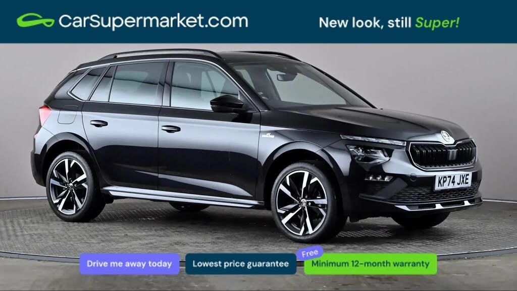 Advanced driver attention and drowsiness monitor,Bluetooth system,E-call,Front assist system,PAS,Rear parking sensors,Service indicator,Speed limiter,Traffic sign recognition,Virtual cockpit with 10.25" display,Voice control system,Wireless smartlink,4 USB C ports,8 Speakers,9.2" Skoda navigation display,DAB Digital radio,Auto dimming rear view mirror,Automatic headlight control with coming home and leaving home feature,Black door mirrors,Black radiator grille,Black rear diffuser,Black roof spoiler,Body colour bumpers,Body colour door handles,Boot lettering in black,Extended tailgate glass,Fixed panoramic sunroof with black roof rails,Front and rear electric windows,Heated rear window,LED daytime running lights,LED high beam,LED low beam,LED third brake light,Light sensors,Monte carlo plaque,Privacy glass,Rear side wing doors,Rear wiper,Ticket holder inside windscreen,12V socket in luggage compartment,3 seat bench in 2nd row,Aluminium pedals,Ambient lighting in white/red,Art leather carbon decor inserts,Art leather carbon door inserts,Black roof lining,Cargo elements,Chrome inner door handles,Driver and passenger sun visors with vanity mirror,Dual zone climate control,Front and rear roof lights,Front centre armrest,Front head restraints,Glove compartment with illumination,Height adjustable driver seat,Height adjustable front passenger seat,Ice scraper,Inner circulation control with pollen filter,ISOFIX on front passenger seat,Isofix preparation for back seats,Leather gearknob and handbrake lever,Manual lumbar support for front seats,Monte Carlo cloth upholstery,Net package and top tether hooks in boot space,Net under rear shelf,Pocket on the back of both front seats include mobile phone pockets,Rake/reach adjustable steering wheel,Reading lights,Rear centre armrests,Red hotstamping,Single front passenger seat,Sports seats,Third rear headrest,Top tether for front passenger seat,Umbrella in driver's door,Light and view plus package - Kamiq,3x3 point rear seatbelts,Airbags - driver and front passenger,Disc brakes,ESP,Extended and predictive pedestrian/cyclist protection,Front passenger airbag deactivation switch,Front side airbags with curtain airbags,Hill hold control,Manual leather parking brake,Manual rear child locks,One tone horn,Seatbelt reminder for driver an co-driver,Traction control,Tyre pressure monitor,Anti-theft alarm system with interior monitoring, backup horn, towing protection and remote central locking with SAFE system,Anti-theft wheel bolts,Electronic engine immobilizer,18" Ursa black diamond cut alloy wheels