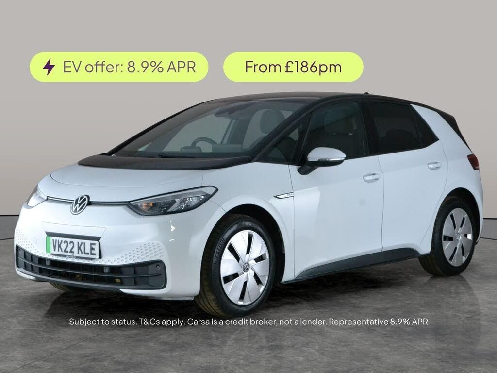 Experience the future of driving with this white Volkswagen ID.3. Packed with standout features, it includes Adaptive Cruise Control and an Assistance Pack to make every journey effortless. The Comfort Pack ensures you'll always travel in style, while LED headlights offer a striking look and enhanced visibility. Front and rear parking sensors take the stress out of tight spots. Stay connected with Bluetooth, and enjoy hassle-free charging at home or on the go with the included charging lead. Discover electric innovation today with the Volkswagen ID.3. 1 service recorded, last serviced on 12/06/2024 at 18,467 miles. MOT to 28/03/2027. Visit our website for service history, online valuation, full vehicle specification plus multiple images. This vehicle is VAT qualifying. Any feature/option specified here is from 3rd party data. We cannot guarantee the accuracy of any specification supplied by a 3rd party. We recommend that you physically check the specification of the vehicle on site prior to purchase. This information does not form part of the buying contract. Terms & Conditions apply. We have over 2,000 cars available from our 10 national branches, check our website to see all our stock. Our Trustpilot rating is 4.4/5 with over 9,000 reviews.