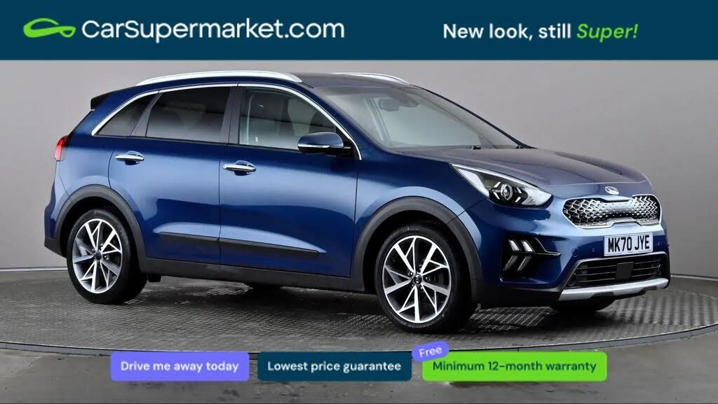 10.25" Touch screen satellite navigation with european mapping and traffic messaging channel,Adaptive smart cruise control function (SCC) with stop and go,Apple car play/Android Auto with voice control,Digital clock,Drive mode selector,Driver attention warning,Emergency stop signalling system,Forward collision avoidance assist,Front parking sensors,Kia connected services featuring TomTom live,Lane Following Assist (LFA),Lane keep assist,Motor driven power steering,Rear parking sensors,Reversing camera,Speed limiter,Telematics system with UVO connect services,Trip computer with distance/fuel consumption/average speed,Wireless Smartphone charger,'Shark fin' mobile antenna,4.2" supervision cluster with TFT colour display,6 speakers,Bluetooth with music streaming,DAB Radio with MP3,Steering wheel mounted controls,USB connection located in centre console,USB port,All round electric windows with drivers and front passenger auto up/down function,Auto dimming rear view mirror,Automatic defog system,Automatic headlight control system,Black beltline mouldings,Black side sills,Body colour bumpers,Body coloured/high gloss door mirrors,Chrome door handles,Driver's side wide angle mirror,Electrically folding/adjustable/heated door mirrors with LED indicators,LED daytime running lights,LED fog lights,LED rear combination lights,Manual headlight levelling,Matt black radiator grille,Privacy glass - Rear windows and tailgate,Projector headlamps,Rain sensing front wipers,Rear spoiler,Rear wiper,Roof rails,Solar glass,Welcome and follow-me home light functionality,Wheel arch mouldings,3 x passenger assist grips,60/40 split/folding 2nd row of seats,8 way electric adjustable drivers seat,All-round height adjustable headrests,Aluminium door scuff plates,Centre console storage box,Centre room lamp,Cupholders in rear armrest,Door armrest in leather,Driver/passenger sunvisors with illuminated vanity mirrors,Drivers seat power lumbar support,Dual zone automatic air conditioning,Front and rear door storage,Front/rear centre armrests,Headlining in Light grey,Heated front seats,Heated steering wheel,High gloss black lower console trim,High gloss black steering wheel trim,Illuminated ignition key hole,Interior door lock/unlock function,ISOFIX Child seat top tethers and anchor fixings,Leather trimmed gearshift,Leather trimmed steering wheel,Leather upholstery,Luggage area lamp,Luggage compartment cover,Luggage net with hooks,Overhead console lamp with sunglasses case,Passenger seat height adjuster,Satin finish inner door handles,Seatback pocket - driver,Seatback pocket - front passenger,Steering wheel mounted paddle shift,Tilt/telescopic adjustable steering wheel,Under floor storage box,Ventiliation ducts to rear compartment,Towing pack - Niro,3 point seatbelts on all seats,ABS,Automatic unlocking of doors in case of impact,Drivers knee airbag,Electric parking brake with auto hold function,Electronic stability control,Front passenger airbag cut-off switch,Height adjustable front seatbelts,Hill start assist control (HAC),Traction control,Twin curtain airbags with roll over sensor,Twin front and side airbags,Tyre pressure monitoring system,Alarm system and engine immobiliser,Deadlocks,Locking wheel nuts,Remote central door locking with fold away key,Visible vehicle identification number,High gloss black centre fascia,High gloss black door inserts,18" Alloy wheels,Tyre mobility kit