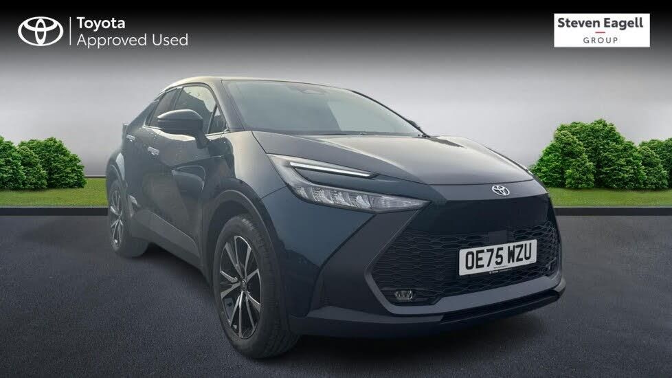 This 2025 Toyota C-HR VVT Design is an exceptional example, boasting an incredibly low mileage of just 25 miles and having had only one owner from new. This nearly new vehicle comes with a full service history and is Toyota manufacturer approved, offering peace of mind. Under the bonnet, it features a 2.0L Petrol Plug-in Hybrid engine, meeting the Euro 6 emission class. Notable features include a reversing camera with rear parking assistance, automatic headlights, a wireless mobile phone charger, blind spot monitor with assistance, and heated front seats for both the driver and front passenger. The C-HR VVT Design stands out with its advanced hybrid technology, providing an efficient and responsive driving experience. The inclusion of a blind spot monitor and parking assistance systems enhances safety and convenience, setting it apart from other vehicles in its class. Its comprehensive service history and manufacturer approval further underscore its excellent condition and care. This Toyota C-HR is a superb choice for those seeking a modern, well equipped, and meticulously maintained vehicle.
