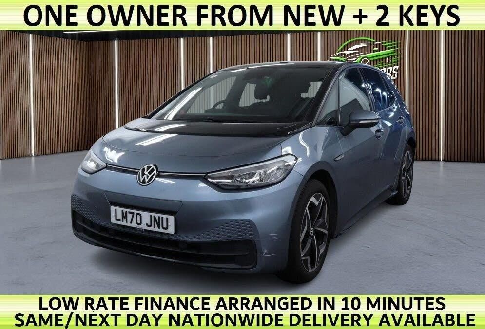 1-Zone Climatronic, 10in Infotainment System, 18in Steel Wheels - Aero, ABS - Anti-Lock Braking System, Adaptive Cruise Control ACC including Front Assist - Radar Sensor Controlled Distance - Monitoring System - City Emergency Braking System - Cruise Control and Speed Limiter, Airbag - Front Centre, Airbags - Curtain Front, Airbags - Driver, Airbags - Front Side, Airbags - Passenger, All-LED Headlights with Reflector Technology, Armrest Integrated into Front Seats, Black Roof, Body Coloured Bumpers - Door Handles and Door Mirrors with Integrated Indicators, Car2X Technology, Comfort Package, DAB Digital Radio, Digital Dashboard, Driver Alert System, Driver Profile Selection with Personalisation, Electric Windows - Front and Rear, Electronic Parking Brake with Auto Hold Function, Exterior E-Sound, Free WeConnect Start for First 3 Years, Heated Rear Window, ID Light, Infotainment Package, Interior Alarm, Interior Ambient Lighting - 10 Colours, Lane Assist, Mode 3 - 32-AMP - 7.2kW Charging Cable for Charging at Public Charge Points, NCAP Pack - Forward Collision Warning - Extended and Proactive Pedestrian Protection, Natural Voice Control, Parking Sensors - Front and Rear, Power Assisted Steering - Speed Sensitive, Remote Tailgate Unlocking, Security and Service - SOS Buttons, Special WeCharge Conditions for ID 3 Customers within First 3 Years, Steering Wheel - Multifunction, Tyre Mobility Kit, We Connect ID App, Wireless App Connect