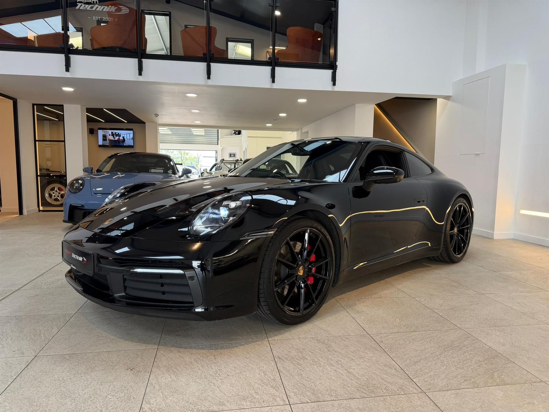Black, Extended black leather interior, Sport seats with 14 way adjustment and driver memory package, Sports exhaust, Rear axle steering, PDCC Porsche Dynamic Chassis Control, Electric glass sunroof, Porsche crested headrests, Power steering plus, Keyless entry, Privacy glass, Electric folding mirrors, Sport chrono package plus, Rev counter in Guards Red, BOSE sound system, Park assist with rear view camera, Seat belts in guards red, Auto dimming rear view mirror, Lane change assist.