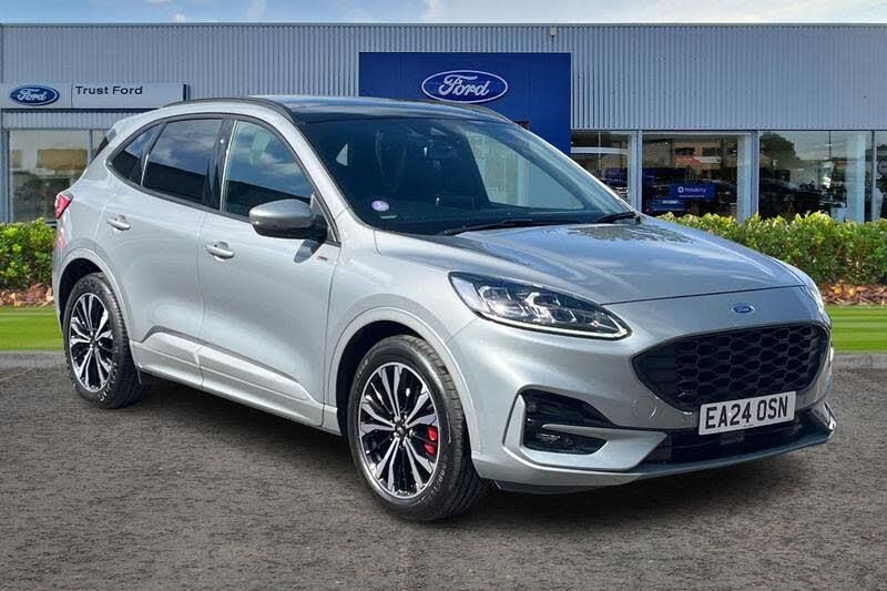 12.3 digital colour instrument cluster, Ford easy fuel, Ford SYNC 3 with 8 TFT LCD touchscreen, App Link, andriod auto/apple carPlay, emergency assistance and navigation with Ford pass connect, Front and rear parking sensors, Hands free power tailgate, Lane keeping aid with lane departure warning, Power assist steering, Rear view camera, Selectable drive modes, Service interval indicator, Auto headlamps with high and low beam, Black roof rails, Body colour bumpers, Day/night rear view mirror, Front LED fog lamps, Large rear roof spoiler, LED daytime running lights, LED rear lights, Power folding, electrically adjustable and heated door mirrors with puddle lights, Power front/rear windows with global close, Power opening panoramic roof, Quickclear heated windscreen, Rain sensing wipers, Rear privacy glass, Rear side wing doors, Rear wiper, ST Line body styling kit with unique front and rear fascia and bumper, rear painted diffuser, front painted skid plates, dark mesh upper grille, ST Line front scuff plates, Third brake light, Twin exhausts, 2nd row sliding seats with 60:40 split, Alloy pedals, Centre console with electronic parking brake, Dark headlining and pillars, Electronic automatic temperature control (EATC), Flat bottomed leather steering wheel in sensico with red stitching, Front and rear head restraints, Heated passenger and driver seats, Heated rear seats, Heated steering wheel, Partial premium touch Sensico with black cloth inserts and red stitching, Rear centre head restraint, Single front passenger seat, Sports seats, ST Line front and rear floor mats, 3x3 point rear seatbelts, Airbags - front driver/passenger, front and rear curtain, Drivers knee airbag, Electronic stability control (ESC) and ABS, Ford MyKey Gen 2 safety system, Manual child proof rear door locks, Post collision braking, Pre collision assist with autonomous emergency braking, Rear seat Occupancy alert, Red brake calipers, Tyre pressure monitoring system