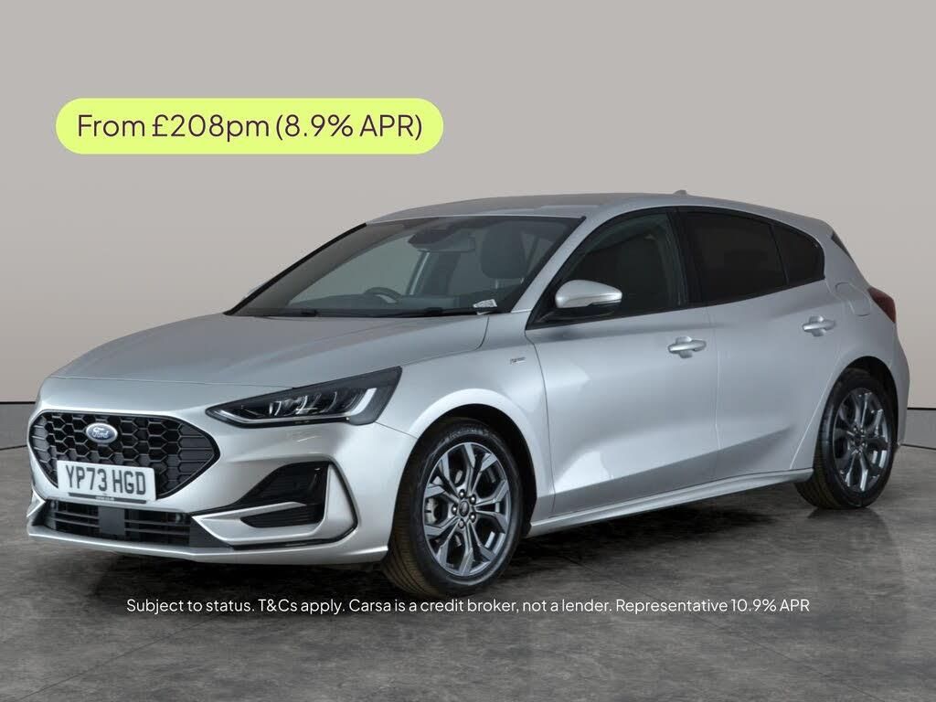 Experience the drive in this stylish silver Ford Focus ST-Line, boasting premium features like LED headlights and advanced Active Lane Assist for added safety. Enjoy seamless connectivity with Apple CarPlay, wireless hotspot and Sat Nav through Ford SYNC, while keyless entry and front and rear parking sensors add convenience. Customise your drive with selectable driving modes and stay secure with the Ford MyKey system. This sporty hatchback is ready for your next adventure. 1 service recorded, last serviced on 30/09/2025 at 18,312 miles. MOT to 30/09/2026. Visit our website for service history, online valuation, full vehicle specification plus multiple images. This vehicle is VAT qualifying. Any feature/option specified here is from 3rd party data. We cannot guarantee the accuracy of any specification supplied by a 3rd party. We recommend that you physically check the specification of the vehicle on site prior to purchase. This information does not form part of the buying contract. Terms & Conditions apply. We have over 2,000 cars available from our 10 national branches, check our website to see all our stock. Our Trustpilot rating is 4.4/5 with over 9,000 reviews.
