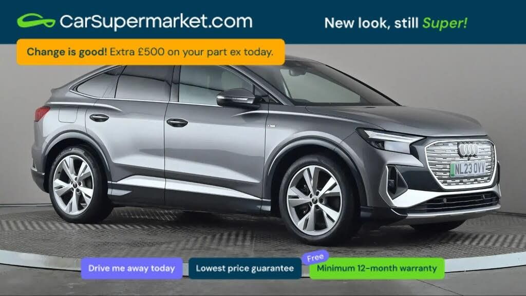 Apple CarPlay/Android Auto, Audi Virtual Cockpit, Bluetooth, Traffic Sign Recognition, Lane Departure Warning, Sat Nav, Digital Radio, Privacy Glass, Heated Front Seats;Audi Q4 150kW 40 82kWh S Line Auto (Grey) A premium electric SUV offering refined comfort, efficiency, and advanced technology. Includes Apple CarPlay/Android Auto, Audi Virtual Cockpit, Bluetooth, traffic sign recognition, lane departure warning, sat nav, digital radio, privacy glass, and heated front seats. 159-point inspection completed. Minimum 12-month warranty. MOT due 07/03/2027.