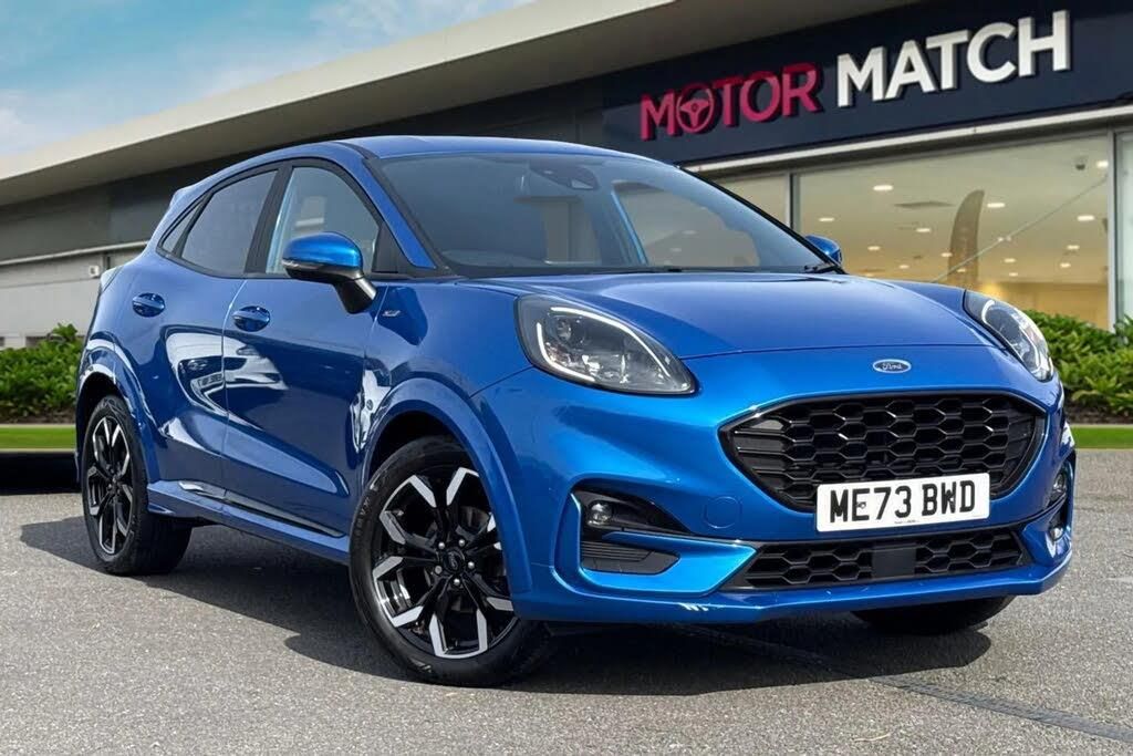 Available now at Motor Match Chester is this Ford Puma 1.0T EcoBoost MHEV ST-Line X, which comes in the stunning Desert Island Blue metallic paintwork, and sits on stunning 18" alloy wheels for a fantastic look! This vehicle was last serviced at 13,975 miles! The vehicles headlights and LED daytime running lights ensure you're seen at all hours of the day, and the rear parking sensors are perfect for alerting you of any obstructions when manouevring. The boot provides a great amount of storage space, with the option of folding the rear seats for any larger items and the interior is finished in a full cloth upholstery for a comfortable feel. You'll find ISOFIX mounting points on both outer rear seats and the front seats can be heated to provide excellent comforting during the winter months. The multifunctional steering wheel has mounted control for audio functions, as well as the cruise control and speed limiter, which is perfect for motorway driving! In terms of entertainment, you have the choice of the DAB and FM radio, or you can connect devices via Bluetooth to listen to your own music. You can use the Bluetooth function to connect your mobile device to make and take phone calls whilst out on the go and you can even stream apps via Apple Carplay/Android Auto! The satellite navigation allows you to plan routes and locate nearby points of interest for a smoother journey! This vehicle is compliant with Clean Air Zone (CAZ) or Ultra Low Emission Zone (ULEZ) regulations, meaning it produces low emissions and helps to improve air quality in our cities. This car comes with our Motor Match Promise including 30 days or 1,000 mile warranty, whichever comes first, along with flexible finance packages available* Terms & conditions apply. RAC Extended warranties and Click & Collect is also available.