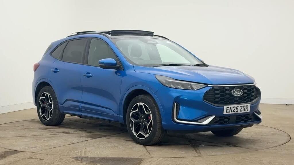 Mini Spare Wheel, Partial Premium Sensico - Black with Red Stitching, 12-Way Ergonomic Power Adjust Driver's and Passenger's Seat, 12V Power Point in Floor Console, 12v Power Point in Cargo Area, 12v Socket - Voltage Regulator, 19in Alloy Wheels - ST-Line- Ebony Black - Machined Finish, 2nd Row Sliding Seats, 360 Degree Camera, ABS - Anti-lock Braking System, Acoustic Vehicle Alert System - AVAS, Adaptive Cruise Control, Air Conditioning - Electronic Automatic Temperature Control - EATC, Airbag - Driver and Front Passenger Side, Airbag - Front Passenger Deactivation Switch, Airbags - Driver and Front Passenger, Airbags - Front and Rear Side Curtain, Aluminium - Finish Front Scuff Plates with ST-Line Script, Aluminium Foot Pedals - ST-Line Design, Ambient Lighting, Auto Dimming Rear View Mirror, Auto Wipers, Automatic Door Relocking, Black Roof Rails, Centre Console with Electronic Parking Brake, Child Locks - Manual on Rear Doors, Cross Traffic Alert, Digital Colour 12.3in Instrument Cluster, Driver Assistance Pack, Driver and Passengers Sun Visor with Illumination, Dual Exhaust Tailpipes with Unique Brushed Stainless Steel Finish, EPAS - Electric Power Assisted Steering, Electric Parking Brake with Auto Hold, Electrical Charging Point in Second Row, Engine Immobiliser - SecuriLock, Enhanced Electronic Stability Control - ESC with Traction Control - Emergency Brake Assist - EBA - Hill Start Assist - HSA and Trailer Sway Control, Exterior Door Handles - Body Coloured, Ford Easy Fuel System, Ford Keyfree System - Keyless Entry with Ford Power Starter Button, Ford SYNC 4 Navigation, Front Seats - 2-Way Manual Height Adjust Passive Head Restraints, Front Seats - Drivers and Passengers Seatback Map Pockets, Front Seats - Sports Style V-shape with High Bolster, Front Windows - Laminated Glass, Front and Rear Bumper - Sporty Body Colour with Rear Ebony High-Gloss Insert, Front and Rear Floor Mats with Red Stitching, Front and Rear Parking Sensors, Full LED Headlamps, Gearshift - Automatic - Electronic Rotary Gearshift Dial, Glovebox Lights, Handsfree Power Tailgate, Headlights - Automatic Follow Me Home Lighting, Headlights - Automatic High Beam Assist, Headlights - Levelling System - Manual, Headlights - Unique Bending, Headliner - Sports Dark, Heated and Power Folding Door Mirrors - Puddle Lights - Memory Function - Camera, High-Mounted Brake Light, Kuga Badge, LED Daytime Running Lights, LED Fog Lights - Front, Lane Keeping Aid with Lane Departure Warning, Large Rear Spoiler, Load Compartment - Lights, Load Compartment - Tie Down Hooks, Load Compartment Carpet, Locking Wheel Nuts, Lower Bodyside Moulding - Body Colour, Lower Door Frame Beltline - Black, Mini Overhead Console with Sunglasses Holder Bin, MyKey, Pop-Out Door Edge Protectors, Power Door Deadlocks - Double Locking, Power Door Locks, Power Opening Panoramic Roof, Pre-Collision Assist with Autonomous Emergency Braking, Quickclear Heated Windscreen, Rear Duct on B-Pillar, Rear Lights - LED, Rear Privacy Glass, Rear Seat - 60-40 Split Folding Seats, Rear Seat Centre Head Restraint, Rear Seats - 2-Way Head Restraint Up-Down, Rear Seats - Folding Centre Armrest with Integrated Cup Holder, Rear Seats - Sliding Seat Adjust Tracks - Fore-Aft, Red Brake Calipers, Remote Tailgate Release, Removable Package Tray, Rocker Panel Mouldings - Body Colour - ST-Line Design, ST-Line Badge on Left and Right Side Wings, ST-Line Bodystyling Kit, ST-Line Front and Rear Bumper Moulding - Body Colour, Seat Belt - Drivers - Front Passenger and Rear Seat Belt Reminder Alert, Seat Belts - Front 3-Point Seatbelts with Load Limiter, Seat Belts - Front Height Adjustable, Seat Belts - Rear Retractable Rear Belt - 3-Point All Positions, Seats - ISOFIX Mounting Provision for Child Seats - Outer Seats Only, Selectable Drive Modes, Single Rear Fog Light, Standard Home Charging Cable - 3-Pin Domestic Socket 230V, Steering Column - Locking Electric, Steering Column - Rake and Reach Adjustment, Steering Wheel - ST-Line Sports-Style Perforated Sensico-Trimmed with Red Stitching, Suspension - Sports, Tailgate Badge - PHEV - Plug-In-Hybrid, Tailgate Handle - Body Colour, Tether Anchorage - Two Rear Seat Top Tether Anchorage Restraints, Thatcham Category 1 Perimeter and Volume Sensing Alarm, Tow Hooks - Front and Rear, Trip Computer, Tyre Inflation Kit, Tyre Pressure Monitoring System, Upper Door Frame Beltline - Black, Windows - Power Front and Rear with Global Closing, Winter Pack, Wiper - Intermittent Rear Window Wiper, Wrong Way Alert, eCall