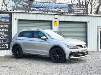 Active information display, Adaptive cruise control, Bluetooth phone integration system, Car-Net App-Connect, Instrument cluster, Lane assist, Low washer fluid warning light, Outside temperature display, Service interval indicator, Speed limiter, Warning lights, Aux-in socket, DAB Digital radio, SD card slot, USB connection, Auto dimming interior mirror, Automatic activation of hazard warning lights, Body colour door handles, Body colour door mirrors, Body colour rear spoiler, Body coloured bumpers, Chrome side window surrounds, Chrome trimmed radiator grille, Coming/leaving home lighting function, Dual chrome exhaust, Dusk sensor + auto driving lights, Elec heated + adjust door mirrors, Electric folding door mirrors, Electric panoramic sunroof with sunblind, Front and rear electric windows, Heated rear window, LED headlights with dynamic light assist daytime running lights and cornering front fog lights, LED rear lights, Piano black rear diffuser, R Line body kit, Rain sensor windscreen wipers, Rear windscreen washer and wiper with interval delay, Silver under body guard, Tinted windows (B pillar backwards), Twin trapezoid chrome exhaust pipes, Lumbar support, 12V socket in centre console, 3 rear headrests, 3 zone climate control, 4 load lashing points, 40:20:40 split folding rear seats, Bag hook in luggage compartment, Black headlining, Driver + front passenger lumbar support, Foldable passenger seatback, Front + rear carpet mats, Front centre armrest with 12v socket, Front centre armrest with storage + rear 2 air vents + cupholders, Front seatback folding tables, Height/reach adjust steering wheel, Illuminated driver/passenger vanity mirrors, Illuminated scuff plates, Interior light with delay, Isofix Preparation 2 Rear child seats, Leather gear knob, Lockable cooled glovebox, Luggage compartment lighting, Luggage compartment side storage, Map pockets on front seats, Passenger seat height adjuster, Rear cupholders, Removable luggage cover, Sliding/reclining rear seats, Stainless steel pedals, Storage compartment in driver's door, Storage compartment in passenger's door, Storage tray on dashboard, Sunglasses storage, Variable boot floor, Ambient lighting pack - Tiguan, 3 rear 3 point seatbelts, ABS+EBD+Brake assist, Active bonnet, Active pedestrian safety system, Curtain airbags, Driver/Front Passenger airbags, Driver/Passenger whiplash optimised head restraints, Drivers knee airbag, Electronic parking brake with auto hold, ESP with EDL + ASR, First aid kit, Front assist including city emergency braking, Front side airbags, Head airbag system, Height adjustable front 3 point seatbelts + pretensioners, Hill hold control, Passenger airbag deactivate switch, Passenger knee airbag, Pre crash system, Rear side airbags, Seatbelt warning lamp and buzzer, Two tone horn, Warning triangle, Alarm with interior protection, Electronic engine immobiliser, Remote central locking with 2 remote folding keys, Diesel particulate filter, Sports suspension, XDS electronic differential lock, Chrome door trim inserts, Piano black interior trim, 20" Suzuka alloy wheels + anti theft wheel bolts, Steel space saver spare wheel