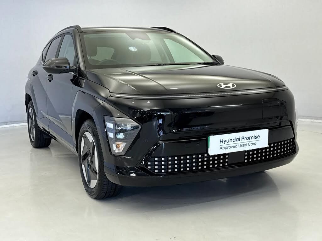 12.3" touchscreen centre console display satellite navigation with bluelink, live services and mapcare,Bluetooth connectivity with voice recognition,Driver status monitor (DSM),Driver supervision instrument cluster with 12.3" LCD display,eCall emergency call system,Feature on demand - Enabled,Forward collision avoidance assist (FCA 1.5) - Car,pededstrian,cycle and junction turning,Front parking sensor,HDA - Highway Drive Assist Level 1.5,Intelligent speed limit assist,Lane follow assist,Lane keep assist,Leading vehicle departure alert (LVDA),Parking system with rear camera and guidance system,PAS,Rear parking sensor,Roadside assistance,Smart cruise control with stop and go functionality,Wireless Smartphone Integration includes Apple CarPlay and Android auto,Charging cable - 7 pin type 2,Emergency 3 pin connector charging cable (ICCB),2 front USB C and 2 rear USB C charging points,DAB Digital radio,Speakers - Front,rear and tweeters,Steering wheel audio,phone and cruise controls,Acoustic film + solar windscreen,Auto dimming rear view mirror,Automatic headlights with dusk sensor,Automatic windscreen wipers with rain sensor,Body colour exterior door handles,Body coloured door mirrors,Body coloured wheel arch inserts,Door mirror LED indicator lights,Electric front windows with anti-trap mechanism and one touch control,Electric rear windows,Electrically adjustable and heated door mirrors,Frunk - under the bonnet storage,Full LED MFR headlights,LED daytime running lights,LED upper and lower rear lights,Power folding door mirrors,Rear roof spoiler with integrated LED brake light,Rear side wing doors,Rear wiper,Roof rails,Satin finished beltline,Tinted glass in front and rear doors,V2L (Vehicle to Load) - Inside,Windscreen auto defog function,12V power outlet in front console,2 zone climate control,3 seat bench in 2nd row,Adjustable head restraints,Cloth upholstery,Driver and passenger front seat pockets,Driver's seat lumbar support,Driver/passenger manual seat height adjustment,Driver/passenger sunvisors and illuminated vanity mirrors,Floor mats,Front cupholder,Heat pump,Height/reach adjustable steering column,Isofix rear child seat fastenings,Leather wrapped steering wheel,LED centre interior light,LED front interior light,Luggage compartment LED lighting,Luggage shelf,Metal paint effect interior door handles,Rear centre armrest with cupholders,Shift by wire SBW,Single front passenger seat,Vertical adjustment rear head restraints,Trailer wiring package - Kona,Airbag - front,front side,curtain and centre front airbag,Anti-lock brake system (ABS),Downhill brake control,Electric parking brake,Electronic stability control,Fixed 3 point for second row centre passenger seatbelt,Hill start assist control (HAC),Manual child lock in rear doors,Rear seat alert,Tyre pressure monitoring system,Alarm/immobiliser,Rear occupant alert,Remote central locking,Smart key with keyless entry and start/stop button,Five year annual vehicle health checks,17" Alloy wheels,Temporary mobility kit (TMK),Abyss Black,Comfort Pack