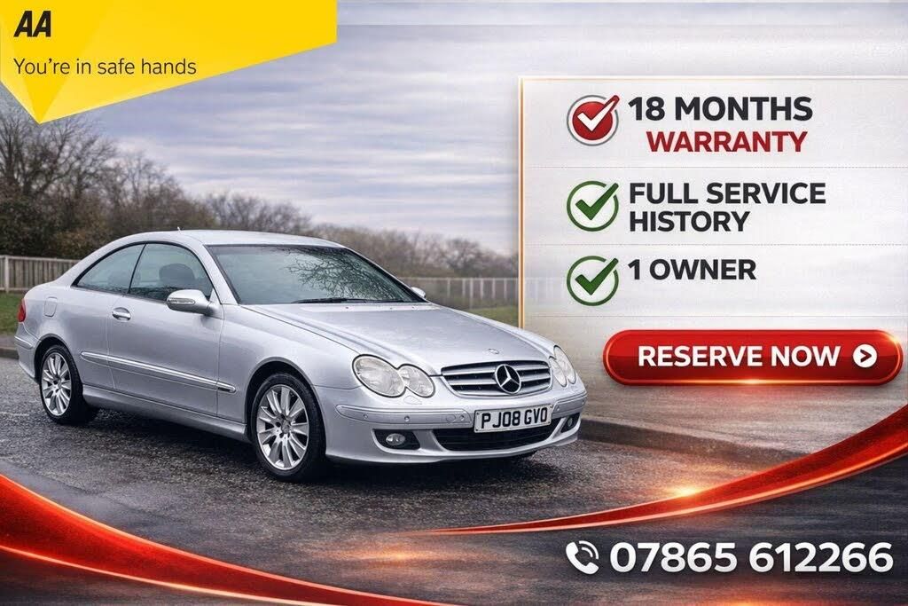 +++ Please contact us before your visit, For sale, Finance, delivery or Part exchange, reserving and test driving call us on 07865612266+++, This Mercedes Benz CLK220 CDI Elegance from 2008 boasts an impressive history, having had only two previous owners. This well maintained example features a 2.1 litre diesel engine and is presented in the desirable Elegance trim.The CLK220 CDI Elegance offers a refined driving experience, and its low insurance group rating makes it an economical choice for many drivers. This particular vehicle's limited ownership history and the Elegance specification suggest a well cared for example that stands out from others in its class.-2 key, FSH, 18M Warranty-Fix your deal on phone, reserve it or get it delivered.