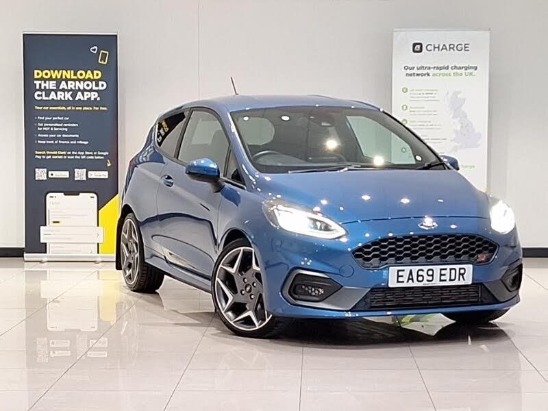 Cruise control, Bluetooth system, DAB Digital radio, Auxiliary input socket, 2 USB ports, Unique ST-Line upper grille & full bodystyling kit with ST-Line wing badges, Rain sensing wipers and auto dimming rear view mirror, Quickclear heated windscreen, Power foldable door mirrors with puddle lights, Rear view camera pack - Fiesta, Driver assistance pack - ST2/ST3/ST Performance Edition, Comfort Pack - Fiesta