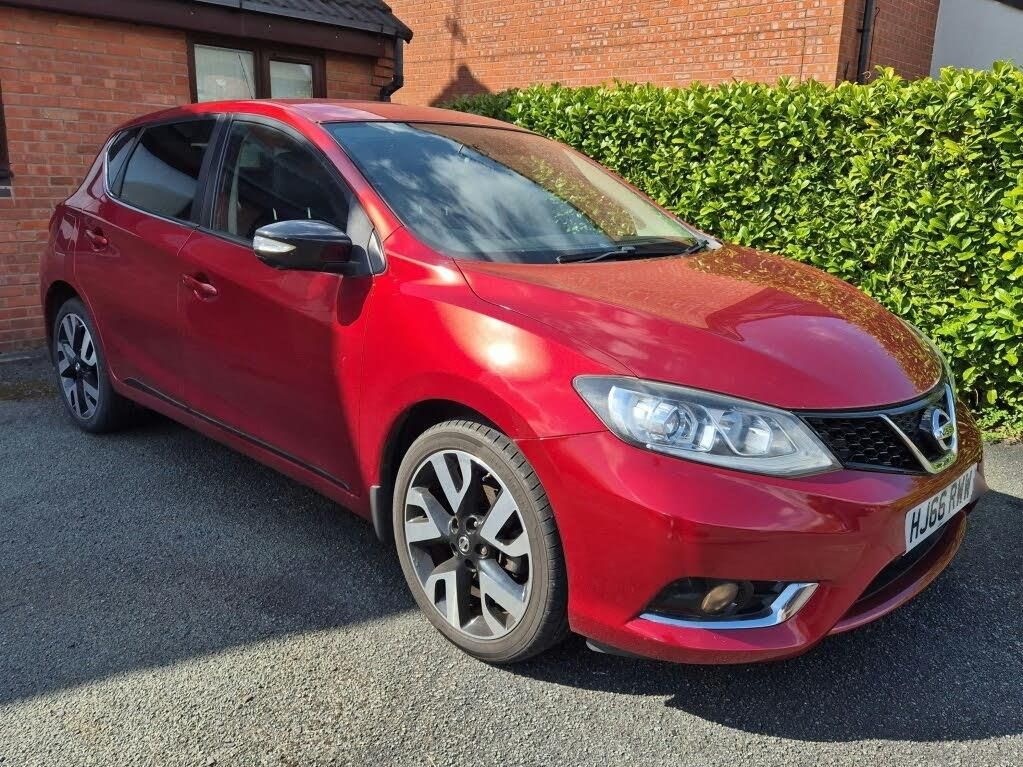 car at dealership awaiting photographs - This popular nissan pulsar 1.2 petrol comes in smooth ruby red complete with 17 inch alloy wheels , inside is spacious stylish and modern , climate & cruise control , leather trim , heated seats , bluetooth preparation , sat nav , parking camera and service history completes this popular hatchback , still only £35 road tax this surprisingly responsive 1.2 petrol engine will also return you a briliant 54.3 mpg combined , drive in style and comfort with sensational running cost , now ask yourself does it get any better ?