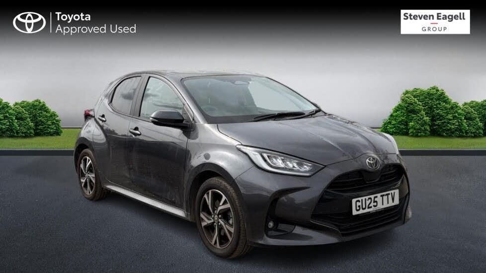 This 2025 Toyota Yaris VVT-h Design is a rare find, boasting an incredibly low mileage of just 4000 miles from its single owner. As a Toyota manufacturer approved vehicle, you can be assured of its quality and care. This stylish hatchback is equipped with a responsive 1.5L Petrol Hybrid engine, meeting Euro 6 emission standards and offering low CO2 emissions. Its Design trim level ensures a well appointed interior, and you'll appreciate the convenience of Bluetooth connectivity, automatic headlights, and a reversing camera for easier parking. Further enhancing your driving experience, this Yaris features Adaptive Cruise Control, which intelligently maintains a set speed and distance from the vehicle ahead, making longer journeys more relaxed. Seamless smartphone integration is provided through Apple CarPlay and Android Auto, allowing you to access your favourite apps, music, and navigation safely. These features, combined with its hybrid technology and exceptional provenance, highlight how this Yaris offers a more efficient and connected drive compared to many other vehicles in its class.