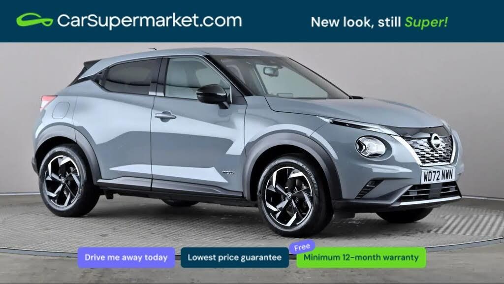 Apple CarPlay, Android Auto, Lane Departure Warning, Sat Nav, Traffic Sign Recognition, Bluetooth, Digital Radio, Privacy Glass, Automatic Climate Control;Nissan Juke 1.6 Hybrid N-Connecta Auto (Grey) A modern and efficient hybrid crossover offering comfort and useful technology. Includes Apple CarPlay, Android Auto, lane departure warning, satellite navigation, traffic sign recognition, Bluetooth, digital radio, privacy glass and automatic climate control. Supplied with a 159-point inspection and a minimum 12-month warranty. Last service 13/04/2026. MOT due 04/11/2026.