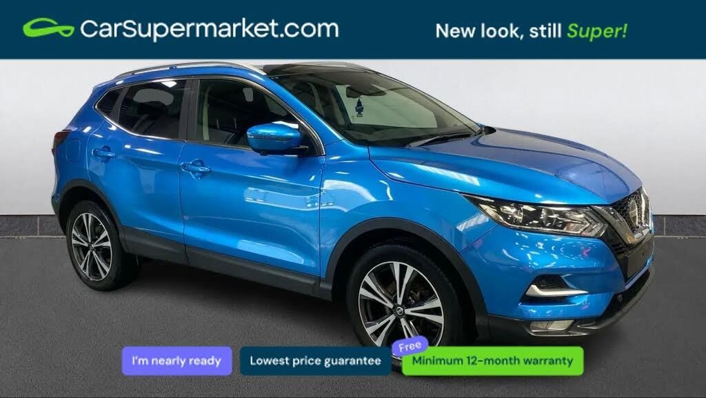 360 degree Intelligent around view monitor,Advanced drive assist display 5'' TFT coloured screen,Apple car play/Android Auto,Bluetooth connectivity,Cruise control + speed limiter,Electric speed sensitive power steering,Front parking sensors,Idle stop/start system,Intelligent park assist,Lane departure warning system,Nissan connect evo 7" touchscreen navigation and entertainment system,Normal or sport selectable steering,Outside temperature sensor,Premium Tomtom connected services,Push button starter,Rear parking sensors,Service interval indicator,Smartphone integration,Traffic sign recognition,Trip computer,Voice control system,Nissan chassis control (intelligent ride control, intelligent trace control, intelligent engine brake),6 speakers,AM/FM radio, CD audio system,Aux-in socket,DAB Digital radio,Steering wheel mounted audio controls,USB port,Anti dazzle rear view mirror,Auto wipers,Body colour bumpers,Body coloured door handles,Body coloured door mirrors,Chrome window surround,Daytime running lights dip function when turn signal applied,Electric folding door mirrors,Electric front and rear windows with one touch illuminated window controls,Electrically adjustable door mirrors,Front fog lights,Halogen headlights,Heated door mirrors,High beam assist,Intelligent auto headlights,LED indicators in door mirrors,Matt silver roof rails,Privacy glass,Rear roof spoiler,Rear wiper with reverse link,Shark fin antenna,Signature LED daytime running lights,Silver rear styling plate,Underbody vortex generators,2 X front 12v power sockets,3 height adjustable rear headrests,60/40 split folding rear seat,Ambient interior lighting,Ambient lighting around centre console,Bi-colour cloth upholstery,Boot lighting,Centre console storage box/armrest,Chrome interior door handles,Driver's seat manual height adjust,Dual zone climate control,Front and rear door pockets with bottle holders,Front and rear seat belt pre-tensioners with load limiters,Height adjustable front headrests,ISOFIX restraints on outer rear seats x2,Leather D shaped steering wheel,Leather gear lever,Leather knee pad,Luggage board system,Manual height adjustable passenger seat,Manual lumbar support on driver seat,Manual lumbar support on passenger seat,Monoform front sport seats with plastic backboard,Parcel shelf stow function under luggage board,Pollen filter,Rear armrest with 2 cupholders,Synthetic leather wrapped door handle with contrasting stitching,Tilt/telescopic adjustable steering wheel,Glass roof pack - Qashqai,6 airbags - Driver, front passenger, curtain and side airbags,ABS, ESP, EBD and brake assist,Auto hold function,Child locks on rear doors,Electronic parking brake,Front and rear seat belt warning,Height adjustable front seatbelts,Hill start assist,Intelligent emergency braking with pedestrian recognition,Manual passenger airbag deactivation function,Three 3 point rear seatbelts,Tyre pressure monitoring system,Anti-theft immobiliser,Intelligent Key,Remote central locking,Thatcham Cat.1 alarm,Carbon graphite dash trim,18" Two tone alloy wheels