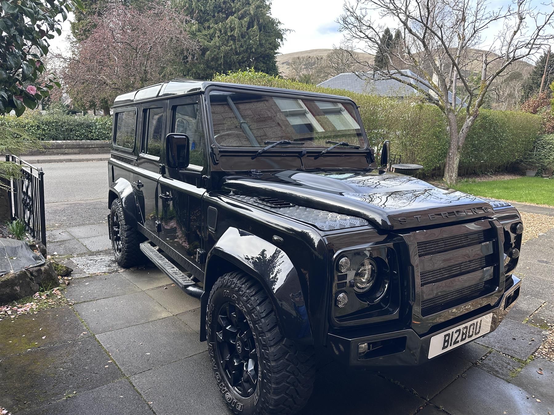The vehicle features an impressive array of enhancements, including flared wheel arches and a Sterling Automotive custom front grill and bumper, which give it a distinctive presence on the road. Comprehensive soundproofing ensures a quieter, more comfortable ride, while the Bilstein steering damper conversion significantly improves handling and overall driving experience. Additionally, a rear view camera seamlessly integrated into the upgraded head unit adds convenience and safety. The engine power upgrade delivers a smooth and effortless motorway journey.