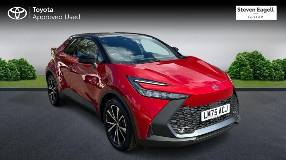 With only 100 miles on the clock, this 2025 Toyota C-HR VVT-h Design represents an exceptional find. This one owner vehicle boasts a 1.8L Petrol Hybrid engine, meeting Euro 6 emission standards. It comes equipped with Smart Entry and Push Button Start for effortless access and ignition, alongside Intelligent Front Parking Sensors with Clearance Sonar and Automatic Braking, complemented by four Rear Parking Sensors to assist with parking. Stay connected on the go with Bluetooth Connectivity, and benefit from enhanced safety with the Blind Spot Monitor. This Toyota C-HR is designed to offer a superior driving experience, highlighted by its low CO2 emissions and placement in a low insurance group, making it more economical to run than many comparable vehicles. These factors, combined with its advanced features and minimal mileage, position this C-HR as a stand out choice for those seeking efficiency, technology, and peace of mind.