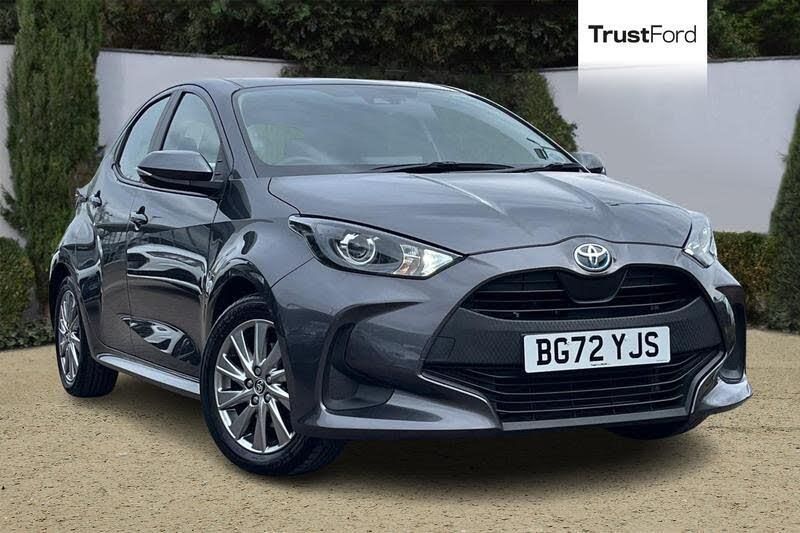 Acceleration suppression at low speed on pre-collision system, Adjustable speed limiter, Analogue speedometer, Analogue tachometer, Bluetooth connectivity, Driver attention alert, E-call, Electric power steering, Emergency driving stop system, Emergency steering assist, Full range adaptive cruise control, Hybrid system indicator, Instrument panel centre cluster, Intersection turn assist, Lane trace assist, Multi info display, Over the air updates, Reversing camera with static guide lines, display in multimedia system, Road sign assist, Shift position indicator, Standard size for muti-info display, Tailgate, Wireless Smartphone integration incl Apple CarPlay, Auto high beam [AHB] with on/off switch, Auto windscreen wipers, Automatic headlight cut-off, Automatic headlights, Automatically retractable door mirrors, Black door moulding, Black lower front grille shaped, Black upper front grille, Body colour door handles, Body coloured door mirrors, Bulb indicators, Bumper and grille garnish resin, Doors lower back, back door garnish, Electric adjustable heated door mirrors, Follow me home headlights, Front auto power windows with anti jam protection, Front halogen fog lights, Halogen projector headlights, Headlight side turn indicators, LED daytime running lights, LED High mounted stop lamp, Manual day/night rear view mirror, Manual headlight levelling, Noise reduction layer on windscreen, Pre wiring for towing hook, Rear auto power windows with anti jam protection, Rear combination lights, Rear intermittent wipers, Rear roof spoiler in night sky black, Rear side wing doors, Rear window defogger with timer, Shark fin antenna, Standard roof, Standard shape upper front grille, Turning signal integrated indicators in door mirrors, Variable front intermittent wipers, 2x Rear coat hooks, 3 adjustable rear headrests, 3 seat bench in 2nd row, 3 spoke leather steering wheel, 60/40 split folding rear seat, Adjustable boot height, Air ventilation system, Auto air conditioning, Black interior door handles, Black stitching on gear shift boot, Black stitching on steering wheel, Border/stitching and Yaris logo on floor mats, Chrome surround on air conditioning buttons, Cup holders (2 front & door), Door pockets, Driver/front passenger sunvisors with vanity mirror, Fabric door trim, Fabric upholstery, Front and rear floor mats, Front centre armrest, Front headrests, Front personal map light, Front/rear assist grips, Grey roof lining, Hard tonneau cover, ISOFIX child restraint system, Leather gearshift, Light remind warning buzzer, Manually height adjustable driver seat, Manually sliding front seats, Overhead console, Painted insert on side air vents, Pollen filter, Satin chrome insert on gear shift, Shopping bag hooks, Single compartment slow opening glovebox, Single front passenger seat, Standard seats, Steering wheel mounted switch for audio, adaptive cruise control, lane departure alert, multi-info, speed limiter, voice recognition, Tilt/telescopic steering column, USB-C Cable, 3 point seatbelts on all rear seats, ABS/EBD, Driver and passenger central airbag, front airbag, side airbag and SRS curtain shield airbags, Electronic parking brake, Emergency brake light signal (EBS), Front passenger airbag on/off switch, Front seatbelt reminder, Hill start assist control (HAC), Occupant detection, passenger and rear seat sensor, Pre-collision system with pedestrian and cyclist detection, Rear child proof door locks, Rear seat belt reminder, Solid rear disc brakes, Tyre pressure warning system, Ventilated front disc brakes