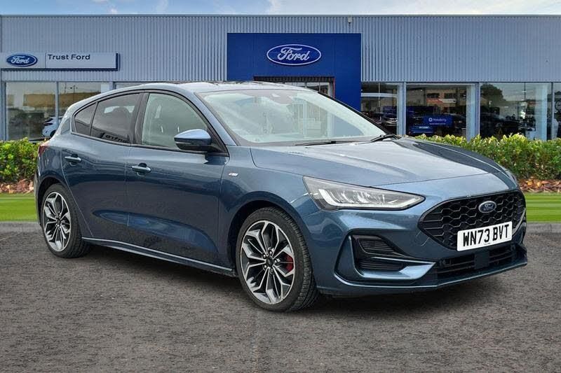 12.3 Digital instrument cluster, Bluetooth system, Digital clock, Easy fuel capless refuelling system, Eco mode, Ford SYNC4 Nav with 13.2'' touchscreen, DAB, Emergency Assistance, Apple Carplay & Android Auto, B&O Premium Audio with 10 speakers, FordPass Connect, Lane keeping system - lane keeping alert and lane keeping aid, PAS, Rev counter, Selectable drive mode, Service interval indicator, Trip computer, Wireless charging pad, Auto headlamps (on/off), Body coloured door handles, Electrically operated front and rear windows with one touch opening and closing, Electrically operated heated power fold door mirrors with puddle lamp with side indicators, Front variable intermittent wipers with electric wash, Heated rear window, LED daytime running lamp, LED rear lamps, LED third brake light, Polished twin tailpipe, Privacy glass, Quickclear heated windscreen, Rain sensor, Rear side wing doors, Tailgate wash/wipe, Unique ST-Line grille, full bodystyling kit, and large body coloured rear spoiler, 3 rear headrests, 3 seat bench in 2nd row, Dual zone electronic air temperature control, Full sensico premium upholstery, Height adjustable front headrests, Isofix child seat preparation, Load through ski hatch, Manual 4-way passenger seat adjusts, Power 4-way driver seat adjust, with power lumbar adjust, Reach + rake adjustable steering column, Single front passenger seat, 3x3 point rear seatbelts, ABS+Electronic Brake force Distribution, Auto hold function, Driver airbag, EDL traction control, Electronic parking brake, Electronic stability control, Front and rear seatbelt reminder, Front inertia reel height adjustable seatbelts with pre-tensioners, Front passenger airbag, Front side airbags, Passenger airbag deactivate switch, Post collision braking, Pre collision assist with autonomous emergency braking and pedestrian/cyclist detection, Red brake calipers, Remote/power child rear door locks, Side curtain airbags, Three rear inertia reel lap/diagonal seatbelts, Tyre pressure monitoring system