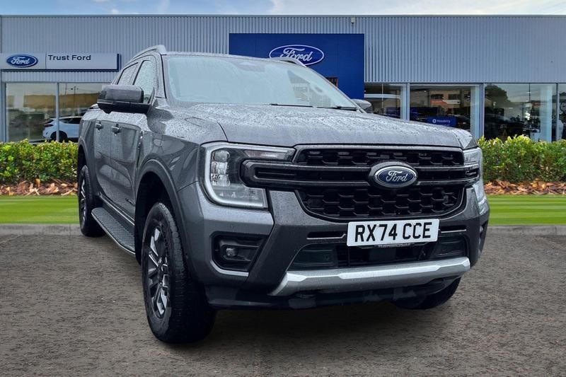 REAR VIEW CAMERA shows whats behind you on a screen in front of you on the dashboard - the system activates when you select reverse gear and using virtual guidelines can help you park, HEATED FRONT SEATS AND STEERING WHEEL Provide comfort in any weather, CRUISE CONTROL provides extra comfort on longer journeys allowing you take your foot off the acceleration whilst just focusing on steering the vehicle, FRONT AND REAR PARKING SENSORS are designed to help you park more confidently helping you judge the distance between your vehicle and obstacles both in front and behind you, BLUETOOTH HANDS FREE WITH VOICE CONTROL allows you to operate both your mobile phone and Ford audio system - controlling several functions using a set list of simple voice commands, QUICKCLEAR HEATED WINDSCREEN uses ultra thin filaments that superheat to de-ice and de-mist your windscreen as well as help de-freeze the wipers and works in seconds, LANE KEEPING AID uses forward looking cameras to detect if youre unintentionally drifting out of a lane - Lane keeping alert then warns you and if you dont respond the vehicle provides steering torque assistance to help guide you safely back into the right lane, Immobiliser, Engine start/stop system, Ladder rack, Privacy glass, Trip computer, Reach and rake adjustable steering column, Child proof rear door locks, Pollen filter, Tyre inflation kit, High mounted stop lamp, Body coloured door handles, Automatic headlights, Power door dead locks, Electrochromic interior mirror, Daytime running lights, Heated steering wheel, Under hood engine cover, Driver and passenger sunvisors with illuminated vanity mirrors, Active grille shutter, Tyre pressure sensors, Traffic sign recognition, Wireless charging pad, Electric parking brake, Thatcham alarm system, Power front windows with one touch up/down, Front and rear disc brakes, Rain sensitive windshield wipers, Locking rear axle, Electric power assisted steering, Black front fender grille, LED Front fog lamp, Roof storage for driver sunglasses, LED ambient interior lighting, ISOFIX child safety seat attachment, Passive keyless entry and start system, Power tailgate lock, Ebony headliner, Rear splash guard, Thatcham security system, Rear cross traffic alert, Rear fog lamps, Pre collision assist, Acoustic laminated windscreen, Electric windshield defroster, Blind spot detection, Locking wheel lug nut, Electric rear window defroster, Front headlamp leveling, E-marked glass, Non woven carpet, ABS/ESP brakes with electronic brake boost, Electronic automatic gearshift, Non locking capless fuel fill, Dual power heated fold back door mirror with puddle lamps, Assisted conventional tailgate, Self coloured decklid handles, Front splash guard, Rear floor ducts, Fresh air heater, Steering wheel with multimedia controls, Overhead console with dome lamps, Pull out cup holder, Full TFT/LCD instrument cluster, Passenger side roof mounted grab handle, Fuel tank guard, Cargo light, Rear seat pack 15 - Ranger, Functional upgrade pack 3 - Ranger, Interior trim pack 15 - Ranger, Heavy duty terrain pack - Ranger, 360 lighting, Soft ride suspension, AEB and ISA, Accent colour front bumper, Accent colour rear bumper, Rear bumper extension, Outside thermometer, Electronic dual zone automatic air conditioning, Premium air register, Micro rib embossed leather upholstery, Front seat pack 7 - Ranger, Ice warning, One touch power rear windows, Narrow bodyside moulding, Glove box lids, Road departure warning, Evasion steer assist, Fordpass connect modem including eCall and FordPass connectivity, Honeycomb radiator grille, Black exterior mirrors, Remote starter, Level 2 Headlamps, Foam in bumper, Level 2 taillamps, Console with armrest, Front bumper lip, Spare tyre lock, Ford Pro Telematics Essentials, FORDLiive service, Black wheel lip moulding, 12V load box power plug + USB, Mold in color inside door handles, Two passive entry key fobs, Mold in color fog lamp bezel, WILDTRAK, 4X4, ULEZ COMPLIANT, ULEZ, EU