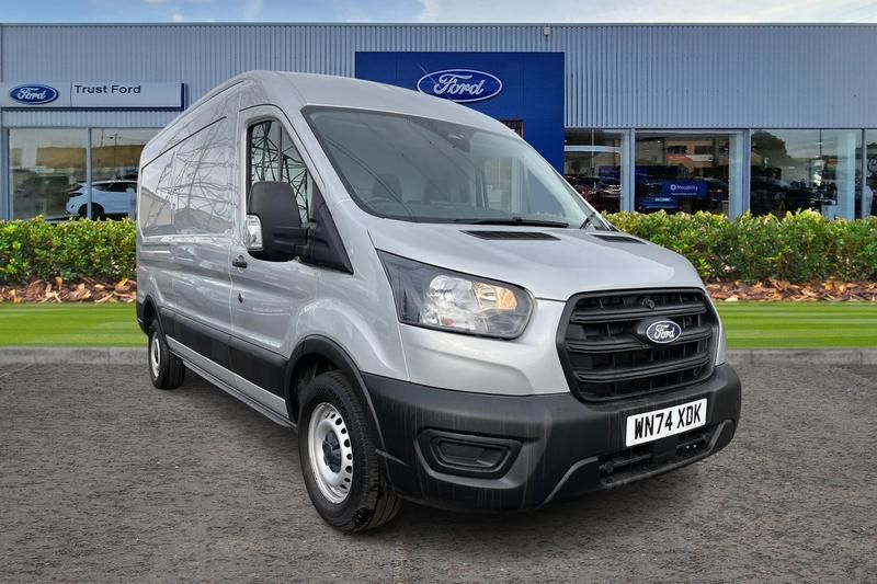 REAR PARKING SENSORS are designed to help you park more confidently helping you judge the distance between your vehicle and obstacles, SELECTABLE DRIVING MODES To choose from tailoring the throttle response steering and gear-change behaviour to the conditions , CRUISE CONTROL provides extra comfort on longer journeys allowing you take your foot off the acceleration whilst just focusing on steering the vehicle, BLUETOOTH HANDS FREE WITH VOICE CONTROL allows you to operate both your mobile phone and Ford audio system - controlling several functions using a set list of simple voice commands, LANE KEEPING AID uses forward looking cameras to detect if youre unintentionally drifting out of a lane - Lane keeping alert then warns you and if you dont respond the vehicle provides steering torque assistance to help guide you safely back into the right lane, HILL START ASSIST temporarily stops you rolling backwards or forwards when making a hill start - maintaining pressure to the braking system for an extra 25 seconds giving you more time and control as you move your foot from the brake to the accelerator, PAS, Single rear wheels, Rear mudflaps, Trip computer, Warning lights, Reach and rake adjustable steering column, High mounted stop lamp, Front passenger airbag deactivation, Audio controls mounted on steering wheel, 2 x 12V power outlets, Stop/start function, Part body colour front bumper, Cold start (-20), Water in fuel filter with sensor, Gearshift indicator light, Daytime running lights, Easy fuel capless refuelling system, Electronic dynamic cornering control, Tyre pressure sensors, Paddle shift, Side wind mitigation, DAB Radio, Intelligent Speed Assist, Emergency assistance, Electric parking brake, Rear fog lights, Visible Vehicle Identification Number (VIN), Overhead console, Vehicle maintenance monitor, Selectable drive mode, ABS + ESP + Hill start assist, Curvature Control, Emergency brake warning, Radio with remote stalks, Rear axle Alt A - Narrow track, Integrated indicators on door mirrors, Automatic windshield wiper, Driver one touch up/down power windows, Header courtesy lights, Driver and passenger seatbelt reminder, Non limited slip differential front axle, Wide bodyside grey mouldings, Partial rubber inside floor cover, Speed dependent power lock group, Molded gear shift knob, Partial molded headliner, Single fuel tank, Quad beam headlamps, Collision mitigation system 2, Non locking lug nuts, Storage box under dual passenger seat, Driver large head/short arm mirror, Interior trim accent pack A - Transit, Delete load floor covering, Load compartment tie down loops, Auto high headlamp, Rain sensing windscreen wipers, Self coloured door handles, Plastic rear bumper, Wrong way alert, Driver front seatbelt buckle pretensioner, 4 radio speakers, 16 Steel road wheels x 6.5, Roof mounted radio antenna, Exhaust exit behind muff down, Standard grille, 235/65 R16C Tyre Size, 8 Part digital instrument cluster, Wireless beltminders, Lane centering assist, Rotary gear shifter, Model badge, 2 litre twin facia mounted bottle holder, Self coloured rear bumper with integral step, Self coloured cargo door handle, 4 spoke polyurethane steering wheel, Front independent MacPherson struts, linear rate coil springs, stabiliser bar, gas pressurised shock absorbers and rear leaf springs, Driver impairment camera, Full braking support (FBS), Skeletal narrow rear track, SYNC4 navigation, ICE Package 2 - Transit, LONG WHEEL BASE, MEDIUM ROOF , BASE, LEADER, ULEZ COMPLIANT, ULEZ, NATIONWIDE DELIVERY AVAILABLE, EURO 6, AIRCON, AIR CONDITIONING, AIR CON
