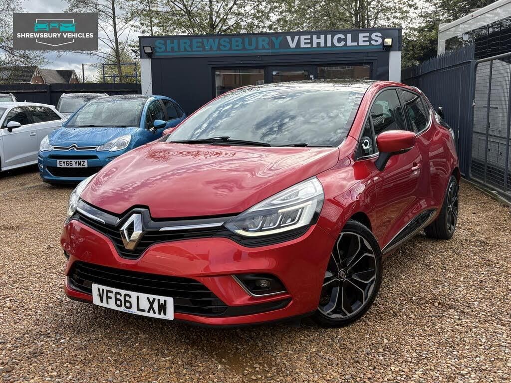 Flame Red,1.2L Storage Shelf Above Glovebox,12V Power Socket,17in Alloy Wheels - Black,2 Storage Spaces for 1 Cup and Miscellaneous Items near Handbrake,4L Front Glovebox,ABS with EBA - Emergency Brake Assist,Airbags - Deactivation - Front and Side - Driver and Passenger,Anti Drill Door Locks and Locking Fuel Cap,Anti-Pinch Function on Front Electric Driver Window,Armrest - Front Centre with Storage Compartment,Automatic Climate Control with One Touch Demist Function and Air Quality Regulator,Automatic Headlights and Front Wipers,Bumpers - Body Coloured,Chrome Window Surrounds,Clio Inscribed Under Renault Diamond Badge,Cruise Control with Speed Limiter,Dashboard - Soft Touch Dark Carbon,Daytime Running Lights - LED,Deadlocking,Driver Seat Belt Height Adjustable,Driver and Passenger Front - Side - Head and Thorax Airbags,EBD - Electronic Brake Distribution,ESC - Electronic Stability Control,ETC - Electronic Traction Control,Eco Mode,Electric Windows - Front and Rear,Exterior Chrome Touches - Front Grille Strips - Boot Lid Strip and Side Door,Exterior Door Handles - Body Coloured,Exterior Door Mirrors - Body Coloured - Heated and Electrically Adjustable and Folding,Exterior Rear Hidden Door Handles,Front Dash Warning Indicator in Case of Heavy Braking,Front Fog Lights,Front and Rear No Seatbelt Warning Sound,Gear Change Indicator,HSA - Hill Start Assist,Handsfree Keycard with Push Button Start-Stop Function,Headlights - Full LED,Headrests - Rear x3,Heating System with Pollen Filter,ISOFIX Child Seat Fixing Points on Rear Outermost Seats,Lower Door Protector - Black Gloss with Chrome Insert,Power Assisted Steering - Electric Variable,RAID - Renault Anti Intruder Device - Automatic Door Locking,Rear Door and Window Child Locking Function for Rear Doors,Rear Parking Sensors,Rear Seats - 60-40 Split and Fixed Base,Rear Spoiler - Body Coloured,Rear Wiper,Remote Central Locking with Thatcham Approved Immobiliser - Thatcham Cat 2,Renault MediaNav,Seats - Drivers Height Adjustment,Single Rear Fog Light,Steering Wheel - Full Leather,Steering Wheel - Height and Reach Adjustable,Trip Computer,Tyre Inflation Kit,Tyre Pressure Warning Light,USB Socket and Jack,Windscreen Wipers - Variable Speed