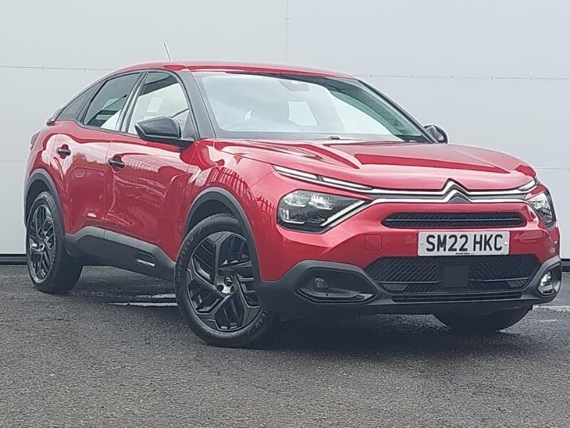 Apple car play and Android auto, Rear parking sensors, Cruise control + speed limiter, 10" touchscreen user interface, controlling media, connectivity and vehicle settings, Dual zone automatic air conditioning, 18" Bi-tone painted aeroblade alloy wheels with anti-theft locking wheel nuts, High level acoustic insulation pack - C4/C4 X/e-C4 X, 5.5 inch backlit full TFT driver's instrument cluster, Gloss black pack - C4/C4 X/e-C4 X, Voice commands, Tailgate, In-crash braking, Electronic Power Steering (EPS), Citroen connect box emergency and assistance system, Advanced comfort suspension - double hydraulic stops on front suspension and single on rear suspension, DAB Digital radio, Bluetooth telephone and audio streaming, Auxiliary input socket, 6 speakers, Boot spoiler, Body colour bumpers, Automatic headlights, 3rd brake light, Electrically heated and adjustable external rear view mirrors, Rain sensing automatic front windscreen wipers, LED front headlamps, LED front fog lamps with static cornering function, LED daytime running lights in V signature, Gloss black rear skirt, Gloss black painted external rear view mirrors and black exterior door handles, Front and rear electric windows, Welcome and goodbye lighting, Tinted side windows with matt black detail, Standard interior rear-view mirror with manual day-night switching, Roof aerial, Rear wiper, Rear side wing doors, 12V power outlet and USB Type-C socket for charging and data connection at 1st row, 3 rear headrests, 3 seat bench in 2nd row, Boot light, Chevrons cloth and leather effect textile seat upholstery, Dashboard tray in front cabin, Driver and passenger sun visors with vanity mirror, Front and rear interior lamps, Front head restraints, Grained leather steering wheel with two command blocks, Height adjustable driver's seat with adjustable lumbar support, Split folding rear seats, Single position boot floor, Single front passenger seat, Raised centre console with armrest and two cup holders, Map pockets in rear of front seats, Height and reach adjustable steering wheel, Height adjustable front passenger seat, Tyre underinflation detection, Seatbelt unfastened on the move warning, Row 1 side thorax airbags, Row 1 and 2 curtain airbags, Post collision safety brake, Manual deactivation of front passenger airbag, Manual child lock in second row, Hill start assist, Front seatbelt pretensioners, ESP, Electric parking brake, Driver and front passenger airbags, ABS, 3x3 point rear seatbelts, Two remote keys, Remote locking with deadlocks, Immobiliser, Puncture repair kit with compressor