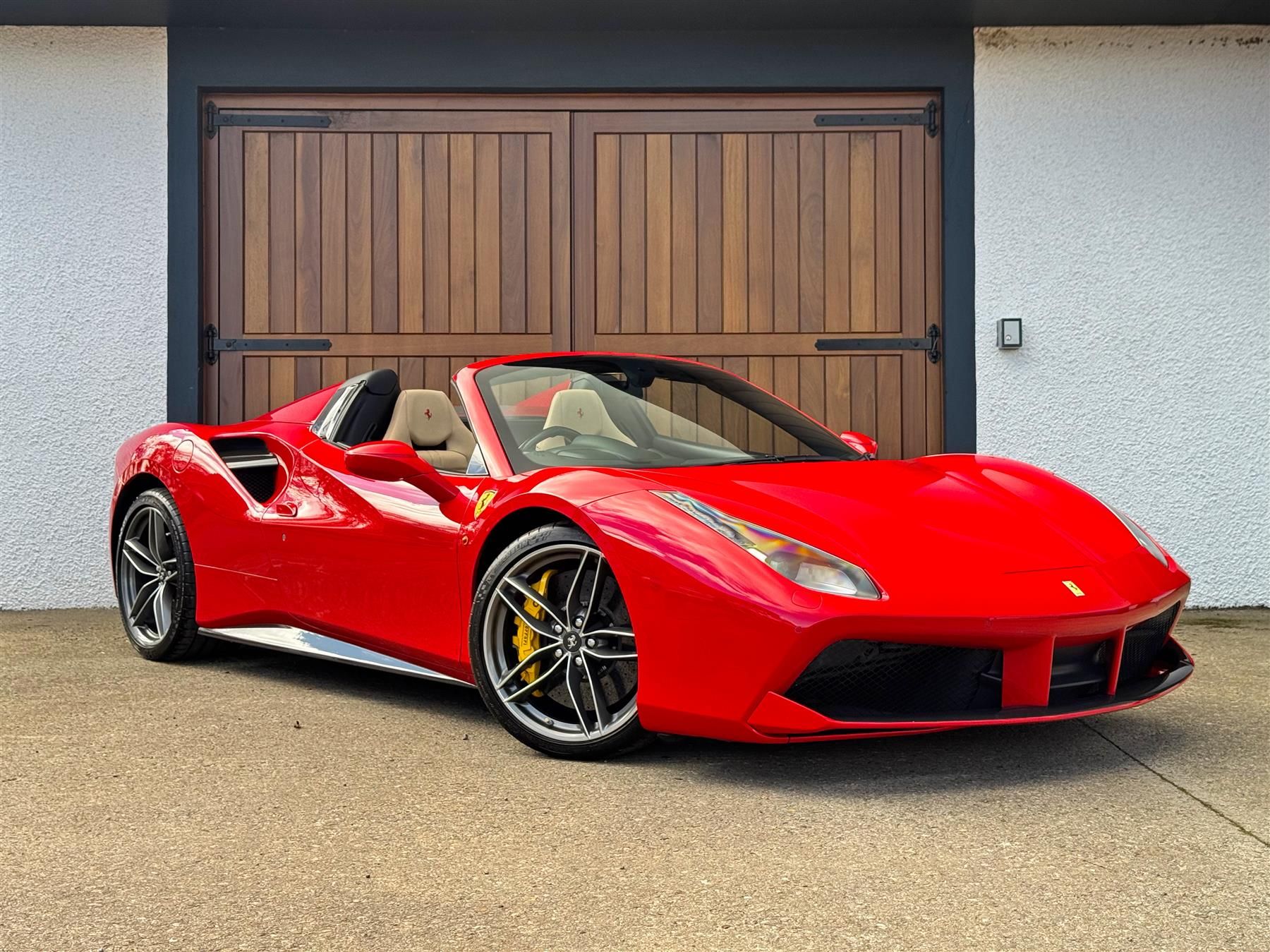 Finished in Rosso Corsa, over Sabbia, with an enormous optional spec list, including Carbon Exterior Package (£17,280) Carbon Racing Package (£8,640) Daytona Racing Seats (£6,500) and a plethora of other options totalling an estimated £65500 it is, in our opinion the best looking 488 on the market today. it is a remarkable example of Italian engineering, boasting a powerful 3.9L petrol engine producing 661 BHP