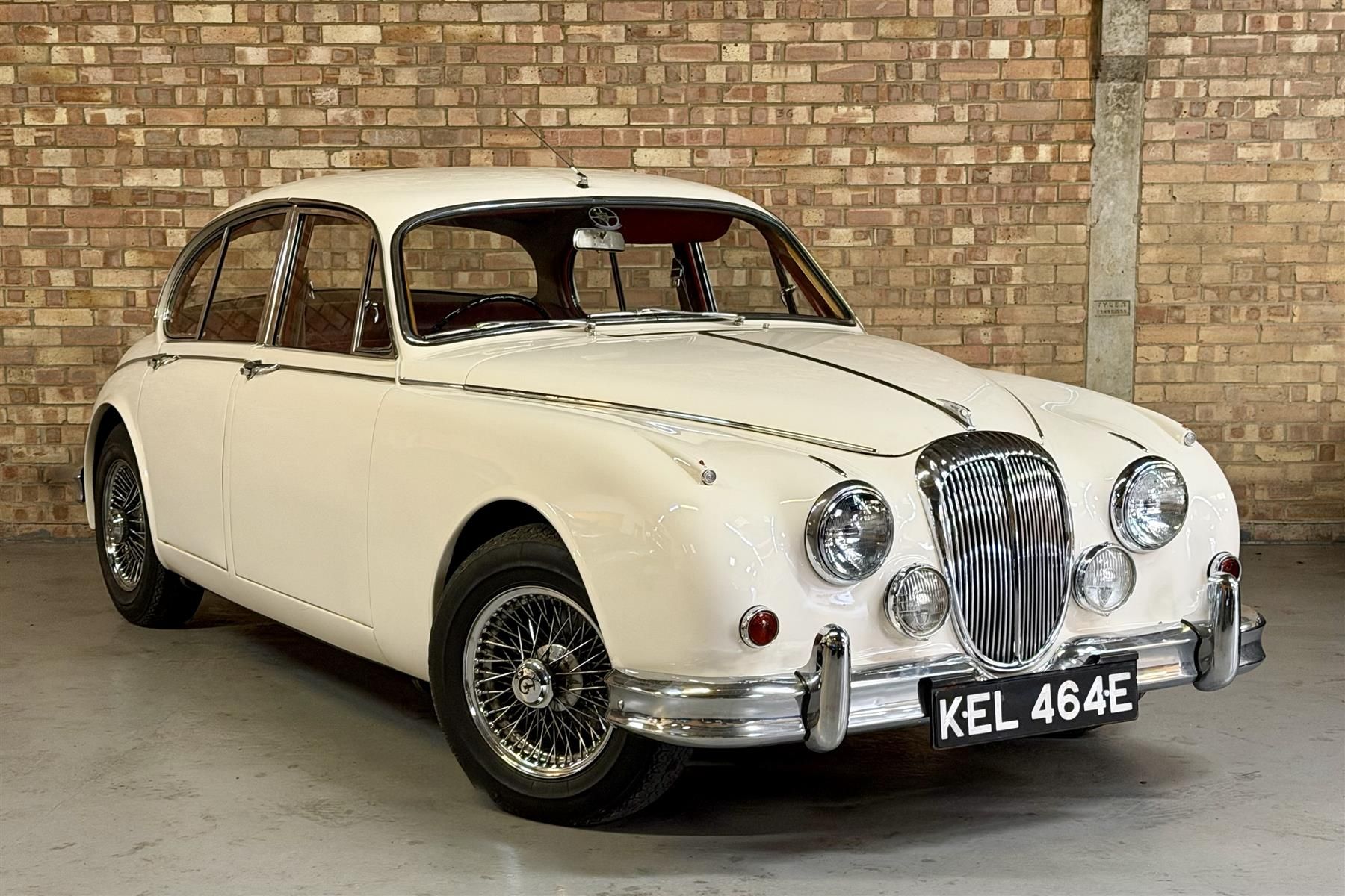 This 1967 Daimler 250 V8 is the epitome of Sixties British class and style. Finished in Old English White with sparkling chrome work, including wire wheels, it's a beautiful car to behold.