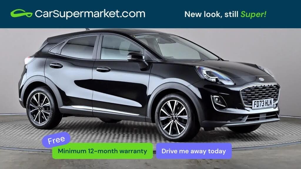 Lane Departure Warning, Traffic Sign Recognition, Quickclear Heated Windscreen, Sat Nav;Ford Puma 1.0 EcoBoost Hybrid mHEV 155 Titanium (Black) A stylish and efficient compact SUV offering practicality and modern technology. Includes lane departure warning, traffic sign recognition, Quickclear heated windscreen and satellite navigation. Added extras include Agate Black paint, cloth interior and privacy glass (£775). Supplied with a 159-point inspection and a minimum 12-month warranty. Documented service history available. Last service 16/04/2025. MOT due 11/12/2026.