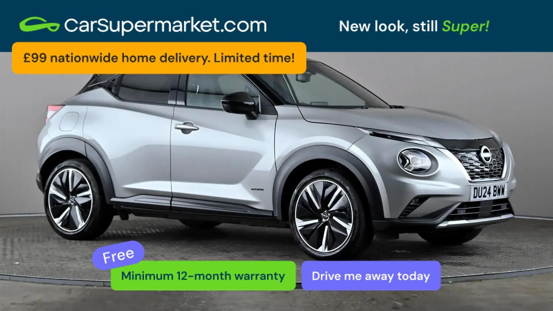 Apple CarPlay, Android Auto, Lane Departure Warning, Sat Nav, Traffic Sign Recognition, Bluetooth, Digital Radio, Privacy Glass, Automatic Climate Control, Heated Front Seats;Nissan Juke Hybrid Tekna+ Auto (Silver) A stylish hybrid crossover combining efficiency with modern technology and comfort. Includes Apple CarPlay, Android Auto, lane departure warning, sat nav, traffic sign recognition, Bluetooth, digital radio, privacy glass, automatic climate control, and heated front seats. Minimum 12-month warranty. Last serviced 29/03/2026. MOT due 03/03/2027.