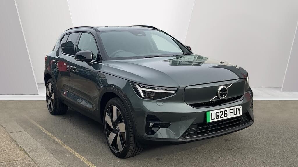 Sculpted gear shift, Roof top. high-gloss black, Door mirror covers. high-gloss black, Cutting Edge aluminium decor, Fusion Microtech/Textile upholstery, Shift-by-wire single speed transmission, Two-zone climate system, Afterrun parking climate, Passenger airbag cut-off switch, Dual-stage airbags, Heat pump, Knee airbag. driver side, Panoramic roof, Charcoal headlining, Charcoal interior inserts, Road Sign Information, Lane Keeping Aid and Lane Departure Warning, Body coloured covered grille, Heated grill emblem, Pixel LED headlights, Headlight cleaning, Trailer lamp control, Fog lamps, 12.3-inch driver display, Google Assistant. Google Maps and Google Play Store, Adaptive cruise control, Intelligent Speed Assist (ISA), Volvo Cars App remote functions, Air-ventilated subwoofer, Digital Audio Broadcasting (DAB+), Harman Kardon Premium Sound, Power retractable door mirrors, Wireless phone charging, Automatic door locking, Remote key, Double locking, Tinted rear windows, BLIS? and Cross Traffic Alert, Alarm, Power child safety lock, Power tailgate, Keyless entry with hands-free power tailgate, Air purifier and remote cabin pre-cleaning, Folding bag hook, Digital owners manual, Power driver seat with memory, Power passenger seat, Heated front seats, Heated rear seats, Power folding rear head restraints, 5 seats, Mechanical release second seat row, Manual cushion extensions. driver and passenger, Power 4-way lumbar support, Textile interior cabin floor mats, Protection net, Foldable load floor with cargo divider and grocery bag, Rear centre armrest, i-Size/ISOFIX mounting points. front seat, Illuminated vanity mirrors, Interior illumination. high level, Distraction alert, First-aid kit, Auto-dimmed rear view mirrors, Front centre armrest, Front load compartment, Glossy black tunnel console, Touring chassis, Hill Start Assist, Tyre pressure monitoring, Oncoming Lane Mitigation, Rear Collision Warning, Hill Descent Control, Slippery road alert, Emergency brake light, Heated steering wheel, Tailored sport steering wheel. Charcoal, Adaptive power steering, 20? 5-spoke glossy black diamond cut. rear, Temporary mobility kit, Lockable wheel bolts, Body-coloured door handles with ground lighting, High-gloss black side window trim, Roof rails. glossy black, Warning triangle, EX40 aluminium front tread plates, Without rear engine emblem, Tempered side and rear windows, Rain sensor, Park assist. front. rear and sides, Whiplash injury protection, Inflatable Curtain, Side impact protection, ISOFIX mounting points. rear seat, Steering wheel remote control, Humidity sensor, Bluetooth® connection, Safety belts, Android Auto, Pilot Assist, Plug & Charge, Electric cabin heater and cooler, 360° camera, Alcohol lock software (not available in the UK), Protective cap kit. Matt Tech Grey, Apple CarPlay, Comfort front seats, 9-inch centre display, Charging station cable. 6m (32A)