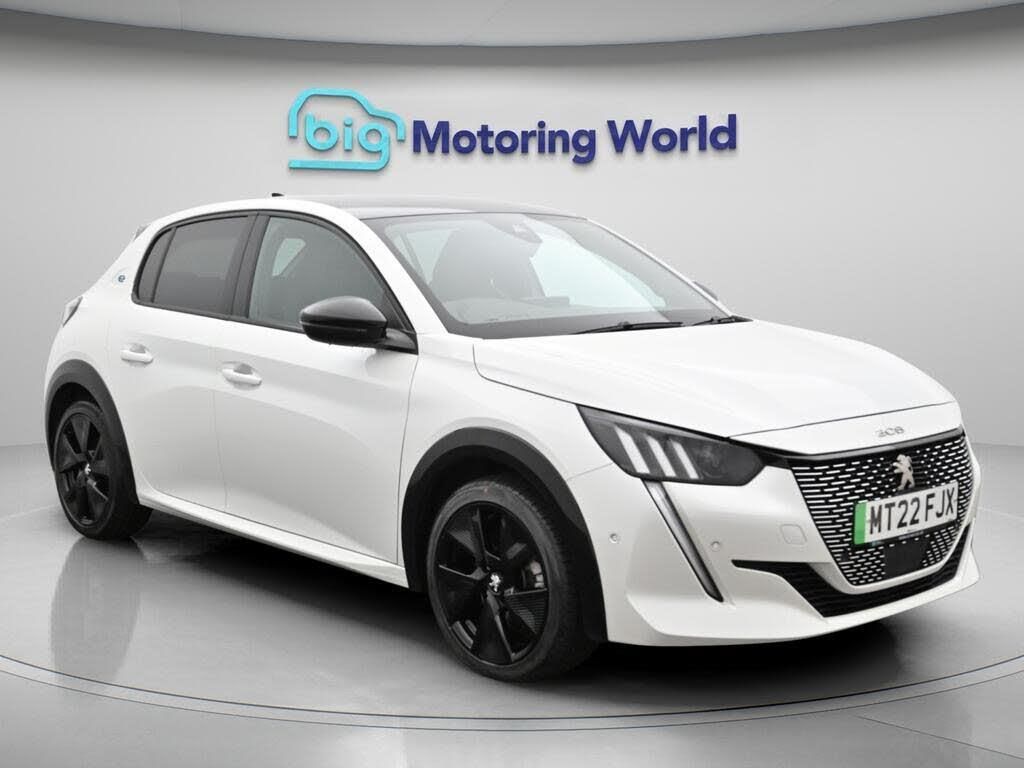 Head up Display,17'' Alloy Whee-Our Peugeot E-208 is finished in White. Specification includes a range of fantastic features including Head up Display, 17'' Alloy Wheels, Apple CarPlay, Privacy Glass, Bluetooth, Blind Spot Assist, Parking Sensors, Ambient Lighting, Cruise Control, Climate Control Specification information is supplied by CAPHPI and may vary to the actual car. This data does not form any part of a buying contact. Please check specification prior to purchase in-store. The MOT is valid until May 2027, visit bigmotoringworld.co.uk for more photos, a 360 tour, service history and a free HPI report.Were BIG on peace of mind and this White Peugeot E-208 has completed our comprehensive 200 point inspection and passed all checks. Its ready for you to drive away with immediate collection in-store. We include a 90-day warranty as standard plus an option to extend for up to 3 years.Reserve this car exclusively for you, safely and securely at bigmotoringworld.co.uk, with a fully refundable £99 deposit. Test drive before you buy, with no commitment, no hassle and a completely haggle free experience. Still searching and want to see thousands more cars? We are BIG on choice with over 8000 cars to choose from.Visit our award winning web site bigmotoringworld.co.uk.Were Big Motoring World and were BIG on what matters to you.