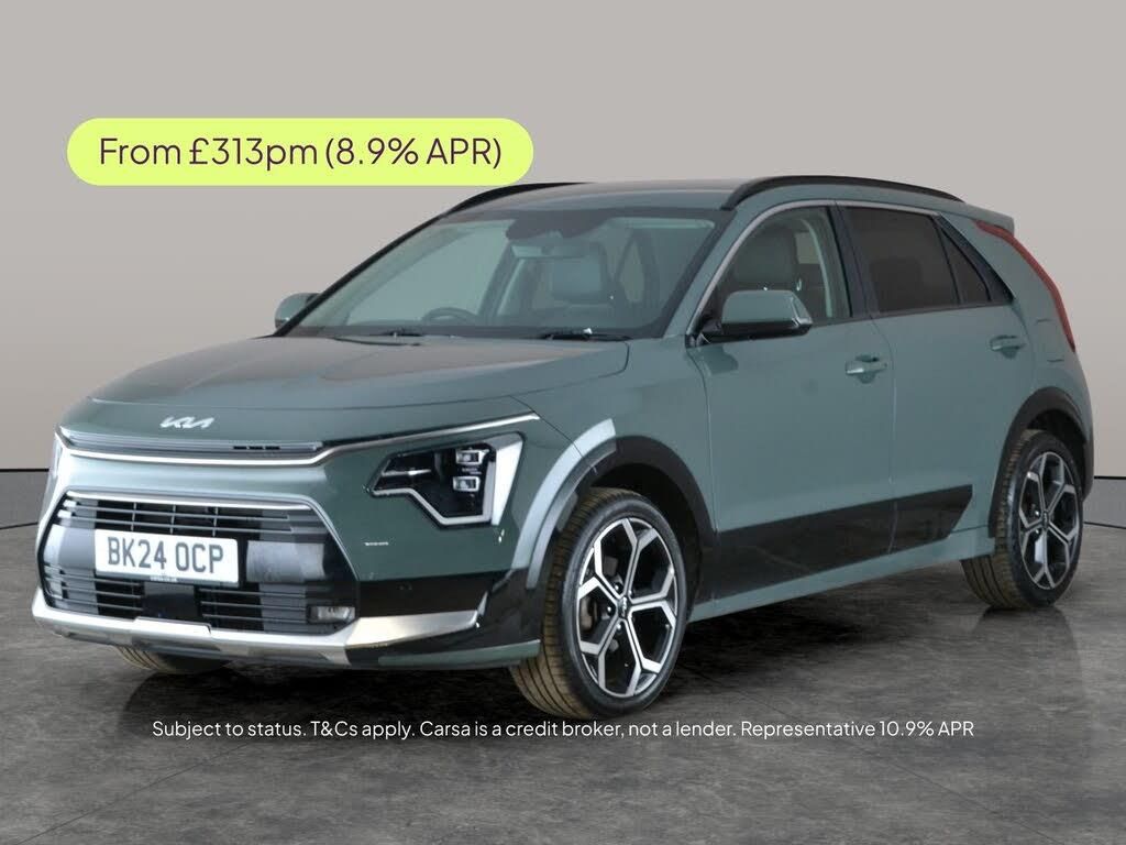 Experience the best of both worlds with this stylish green Kia Niro Petrol Hybrid Automatic. Enjoy luxurious touches like heated seats, a heated steering wheel, a driver electric seat, and a premium Head-Up Display. Stay safe and connected with Adaptive Cruise Control, Active Lane Assist, Blind Spot Assist, and Lane Departure Warning. The large infotainment screen with Apple CarPlay, Sat Nav, Bluetooth Audio, and Wifi keeps journeys entertaining, while LED headlights, black roof rails, and a reversing camera add practicality and flair. 2 services recorded, last serviced on 23/10/2025 at 23,087 miles. MOT to 01/05/2027. Visit our website for service history, online valuation, full vehicle specification plus multiple images. This vehicle is VAT qualifying. Any feature/option specified here is from 3rd party data. We cannot guarantee the accuracy of any specification supplied by a 3rd party. We recommend that you physically check the specification of the vehicle on site prior to purchase. This information does not form part of the buying contract. Terms & Conditions apply. We have over 2,000 cars available from our 10 national branches, check our website to see all our stock. Our Trustpilot rating is 4.4/5 with over 9,000 reviews.